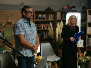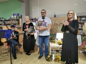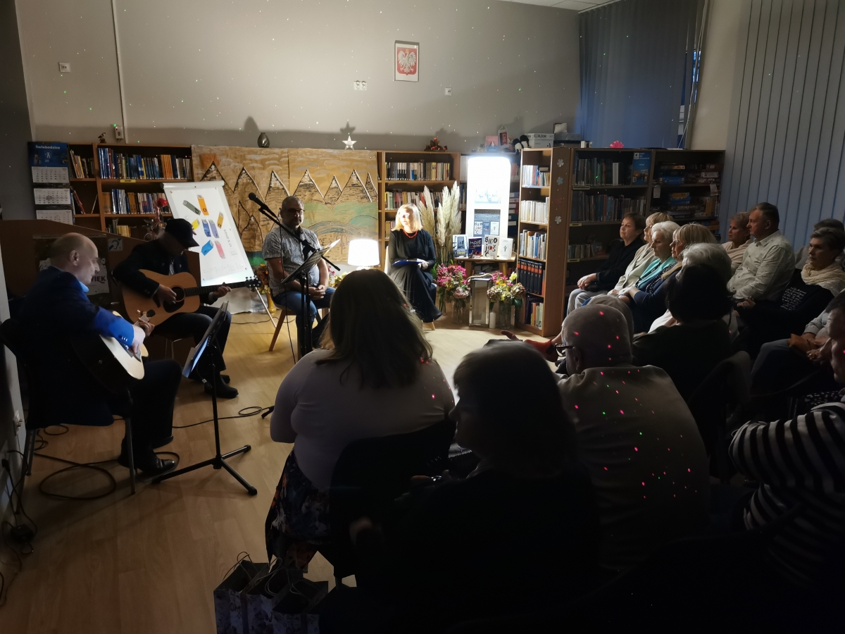 Kolejne wydarzenie odbyło się 18 października 2025 r. W klimat tego wieczoru wprowadził nas nastrojowy utwór zespołu muzycznego tworzonego przez panią Grażynę Danielską, pana Wojciecha Sanoka oraz pana Mariusza Marcinkowskiego. To grupa, która powstała z prawdziwej miłości do muzyki i właśnie ta miłość pięknie splata się dziś z innymi pasjami: miłością do gór, do „małych ojczyzn” i do słowa pisanego.