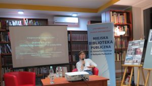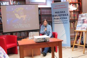 Maria Ryndak wygłosiła wykład „Biblioteka – historia i ludzie”. Prezentacja ukazała ewolucję placówki na przestrzeni lat, podkreślając jej kluczową rolę w życiu lokalnej społeczności.