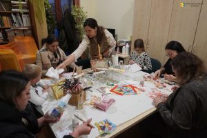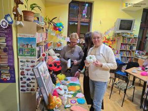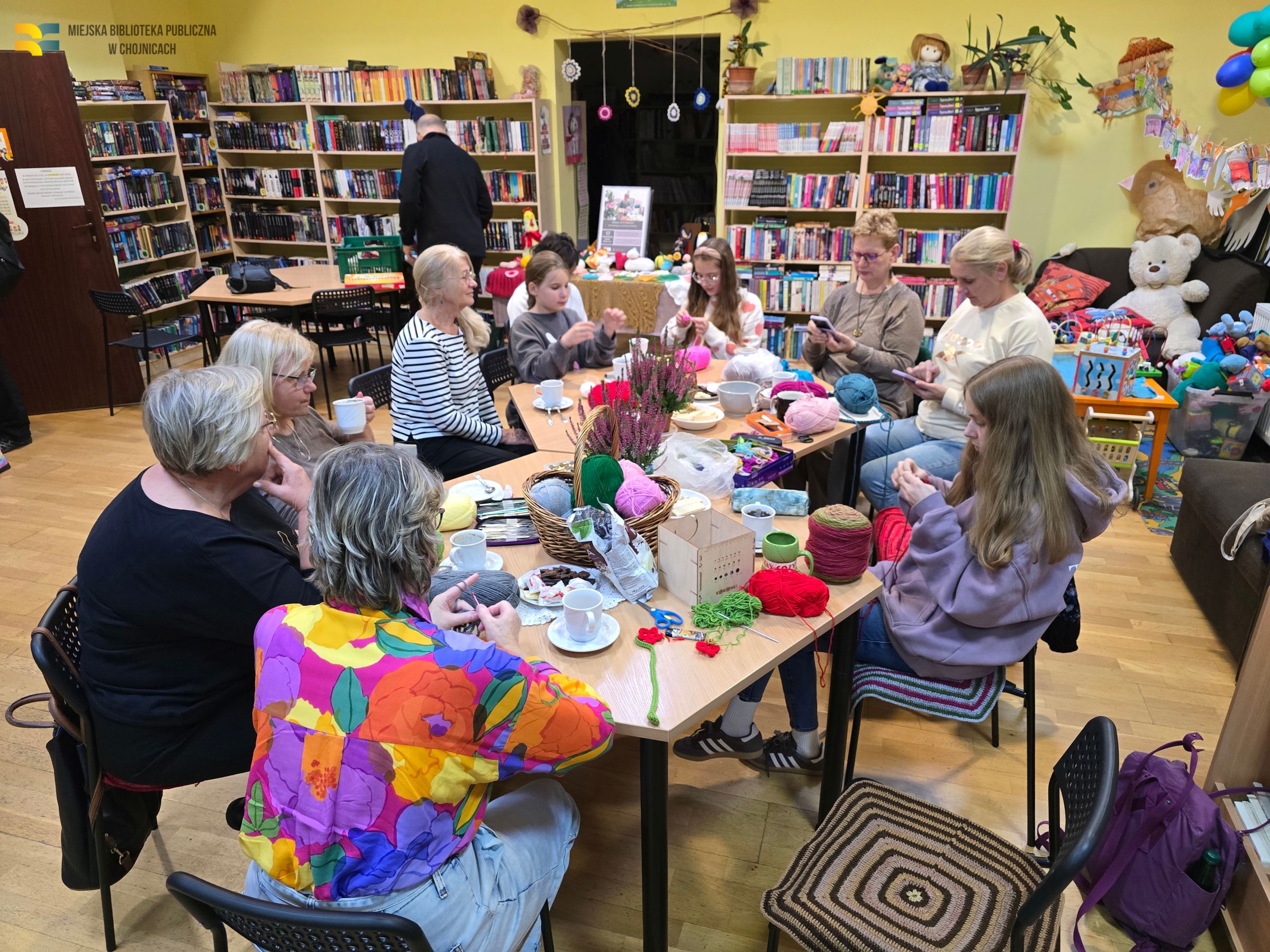W Wypożyczalni i Czytelni dla Dzieci zaprezentowano prace Ireny Wittbrodt, emerytowanej nauczycielki z Nowej Cerkwi, od lat pasjonującej się szydełkowaniem. Jej wyjątkowe dzieła – od aniołków po zakładki do książek – wzbudziły zachwyt odwiedzających. Dodatkowo, od godziny 17.00 do 18.30 odbyły się warsztaty szydełkowania, podczas których uczniowie, młodzież i dorośli wspólnie tworzyli zakładki, kwiaty i inne drobiazgi przy kawie i herbacie. Wieczorem, od 18.30 do 21.00, biblioteka zamieniła się w arenę gier planszowych. Nad rozgrywkami czuwał Andrzej Schulz z Klubu Gier Planszowych „Na planszy”. Wspólnie z harcerzami zaprosił uczestników w każdym wieku do zabawy w takie gry jak Rubik’s Race, Ubongo, Dobble czy Pełny kurnik. Radości i emocji nie brakowało, a w rozgrywkach chętnie uczestniczyły całe rodziny.