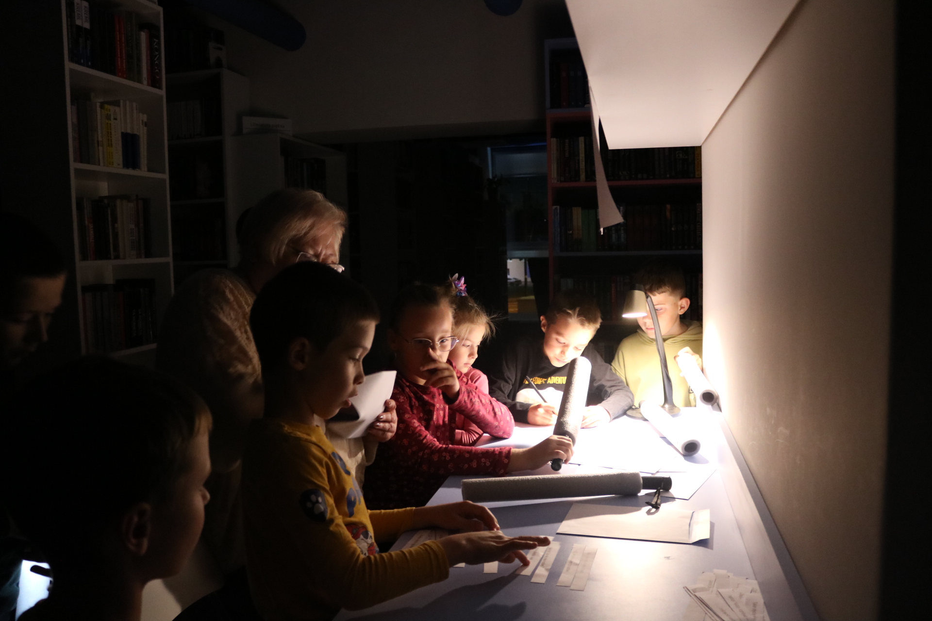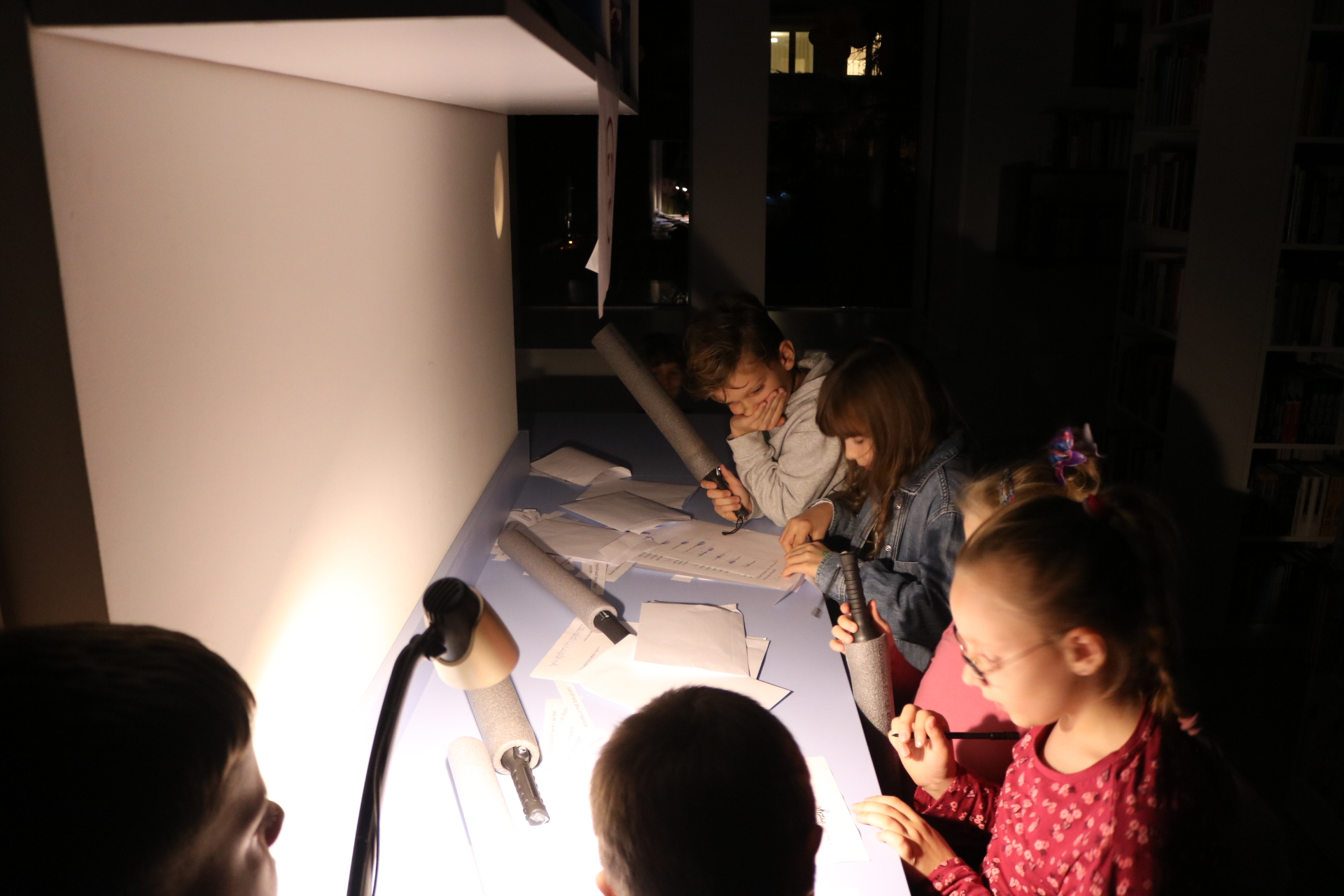 Tegoroczna Ogólnopolska Akcja Noc Bibliotek upłynęła pod hasłem DO DZIEŁA . W sobotę, 18 października, odpowiedzieliśmy zdecydowanie na to hasło 🙂 Ruszyliśmy do dzieła o godzinie 18:00 od zabaw integracyjnych, żeby się lepiej poznać! Potem przyszedł czas na stworzenie samodzielnie map biblioteki i zaznaczenia w bibliotecznych pomieszczeniach naszych ulubionych miejsc. Własnoręcznie zbudowaliśmy miecze świetlne, które były nam potrzebne do bibliotecznej gry - odbywała się ona w ciemności, a miecze pomagały nam znaleźć właściwe bazy i rozwiązywać zagadki! Praca zespołowa okazała się wyjątkowo udana. Żeby się wzmocnić na dalszą część wieczoru zjedliśmy absolutnie pyszne i pachnące pizze oraz pieczone słodkie jabłka z miodem! Na koniec wieczoru obejrzeliśmy wspólnie film "Biuro Detektywistyczne Lassego i Mai. Rabuś z pociągu". Nawet nie zauważyliśmy jak szybko minęły nam te trzy godziny. Na koniec wszyscy otrzymaliśmy drobne prezenty. Kolejna Noc Bibliotek za nami! Dziękujemy i do zobaczenia za rok!