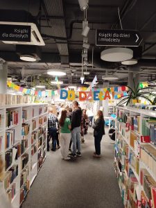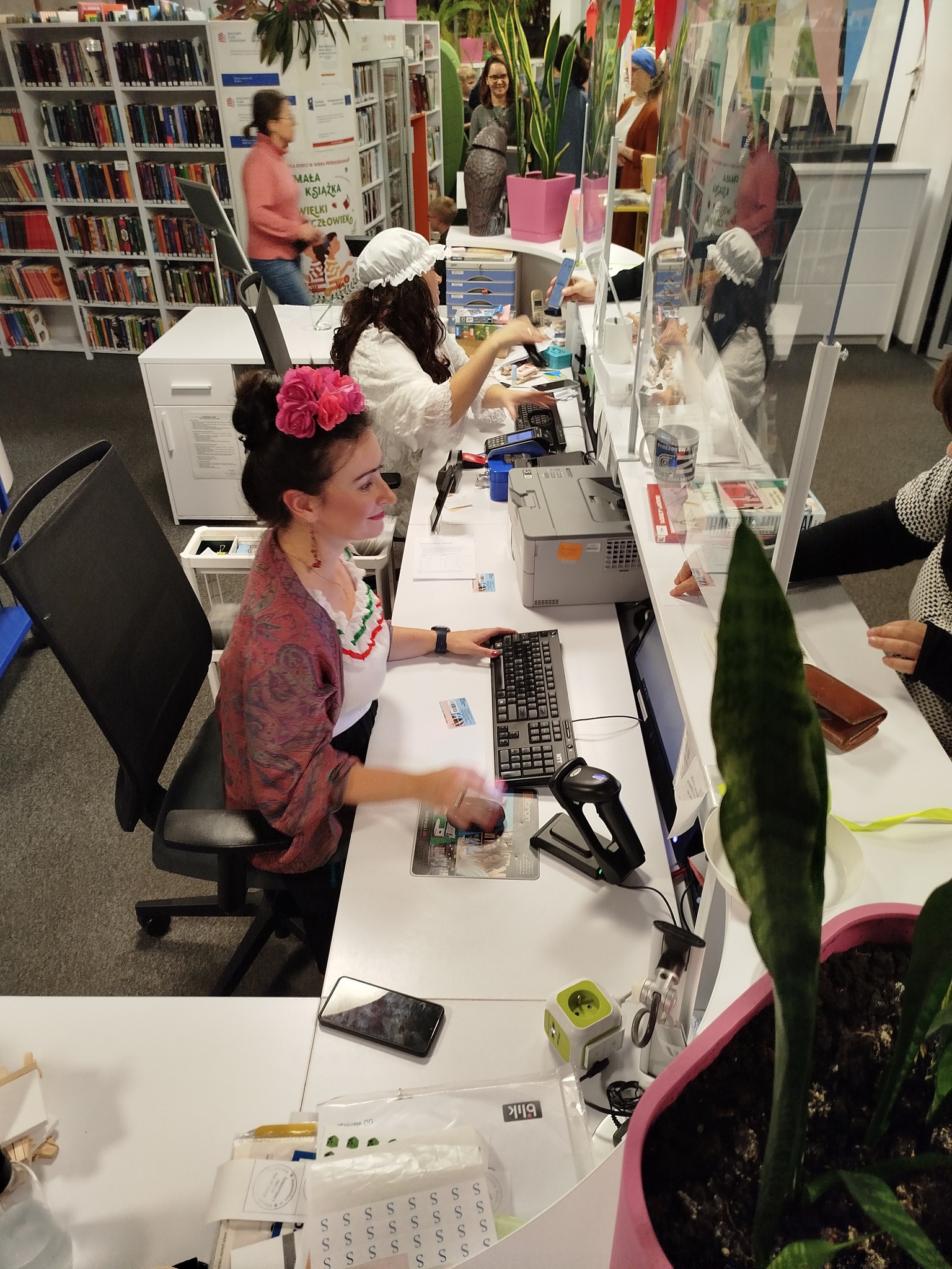 Czytelniczka kątem oka dostrzegła, że dużym zainteresowaniem cieszy się stanowisko, przy którym za pomocą specjalnych okularów można zwiedzić muzeum, a w sali obok młodzież słuchała z uwagą wykładu na temat sztuki cosplayu, zaraz miały się zacząć warsztaty.
