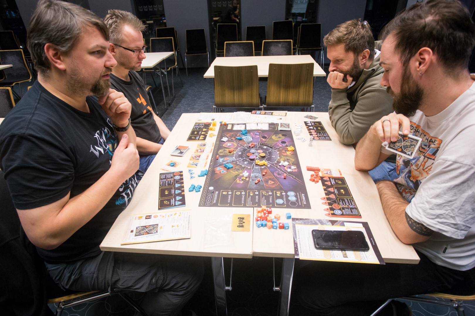 W godzinach od 17:00-20:00 sala konferencyjna przekształciła się w miejsce do rozgrywek w nowoczesne gry planszowe. O dobór gier zadbał sklep Graszki.pl