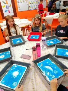 Następnie przenieśliśmy się do świata sztuki i nauki, tworząc niesamowite fotografie wykorzystując światłoczułość soli żelaza. Technika pozwoliła na powstanie monochromatycznych zdjęć w kolorze niebieskim. Tak inspirujące warsztaty poprowadzili Kasia i Rafał Kossowscy.