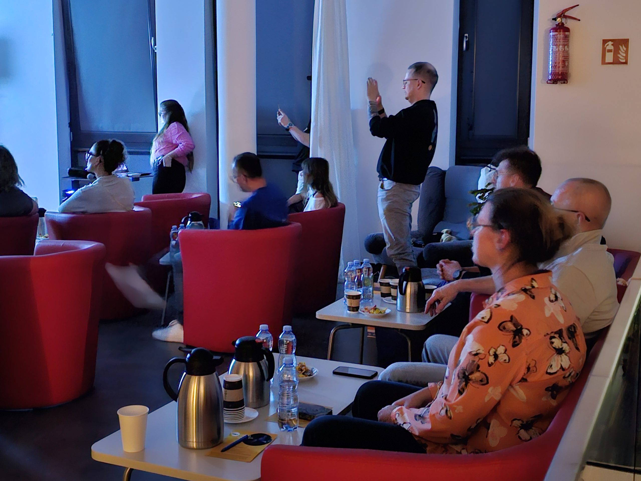 Na zakończenie spróbowaliśmy zabawy w żywy looper – czyli każdy z nas zamienił się w instrument. Udało nam się wspólnie zapętlić kilka dźwięków i przez chwilę poczuć się jak prawdziwy zespół. Trzeba jednak przyznać, że na odważniejsze muzykowanie zabrakło trochę śmiałości – najwyraźniej nie wszyscy czuli się gotowi na solówki… Mimo to zabawa była świetna, a wspólne dźwiękowe eksperymenty pokazały, że nawet w nieśmiałym „loopie” można mieć mnóstwo frajdy.