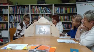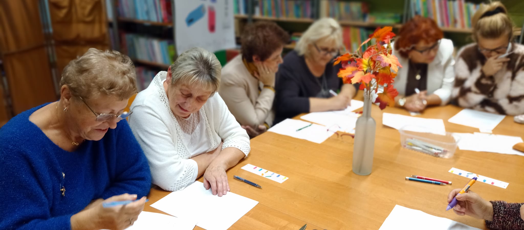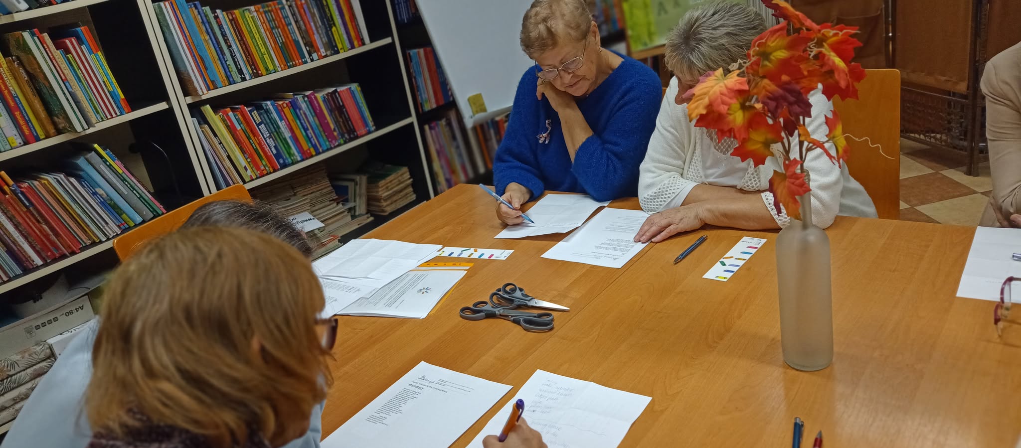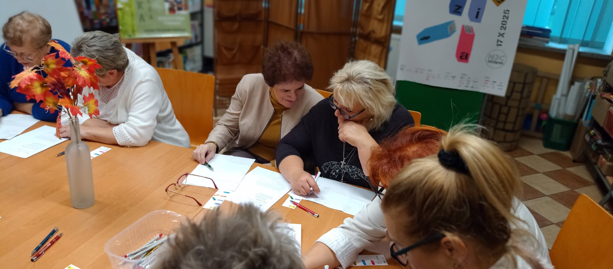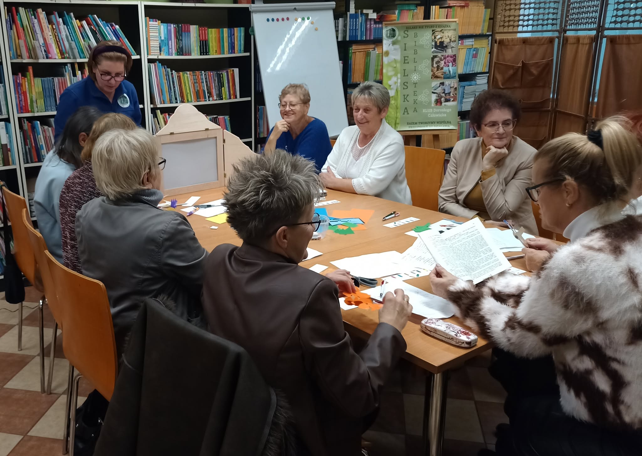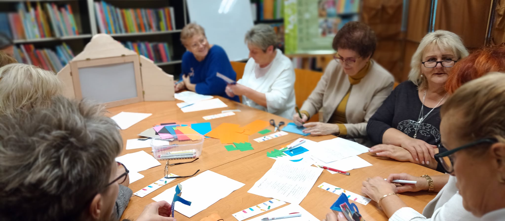 11. odsłona Nocy Bibliotek pod hasłem "Do dzieła" długo pozostanie we wspomnieniach Pań z Klubu SIELSKA BIBLIOTEKA, który działa w naszej filii w Długiem. Tego wieczora w bibliotece panowała bardzo twórcza atmosfera. Zainspirowane wierszami patronki roku Marii Pawlikowskiej-Jasnorzewskiej uczestniczki spotkania najpierw stworzyły własne wiersze, które zaprezentowały w formie obrazu wykorzystując przy tym teatrzyk cieni. Pani Maria zagrała pięknie na akordeonie, podczas wspólnego śpiewania popularnych ludowych przyśpiewek. Na koniec można było przetestować swoją kreatywność i umiejętność rysowania w kalamburach. BARDZO DZIĘKUJEMY za wspólne świętowanie tego ogólnopolskiego wydarzenia, które pokazuje, jak niezwykłe i ważne dla społeczności są biblioteki.