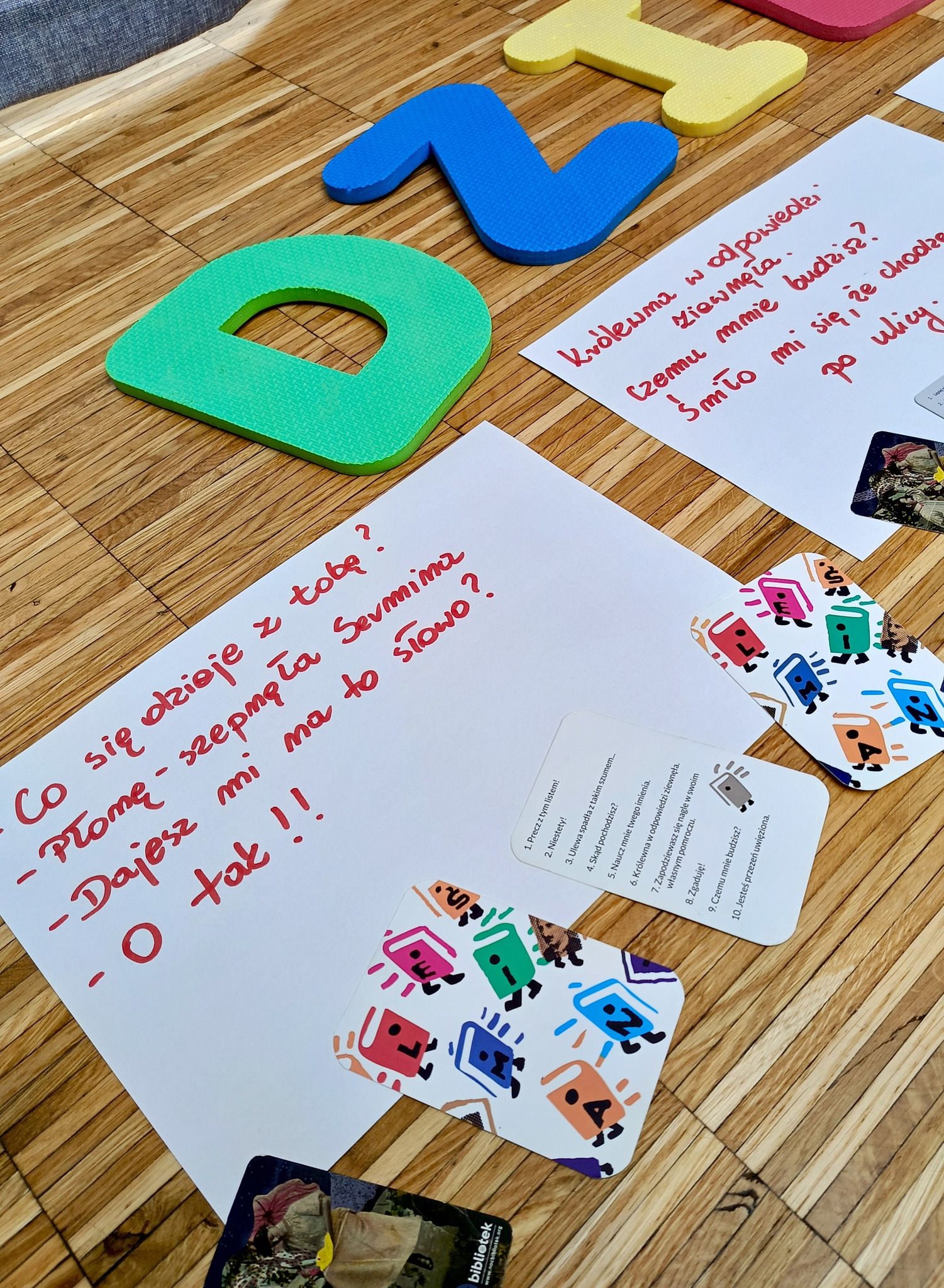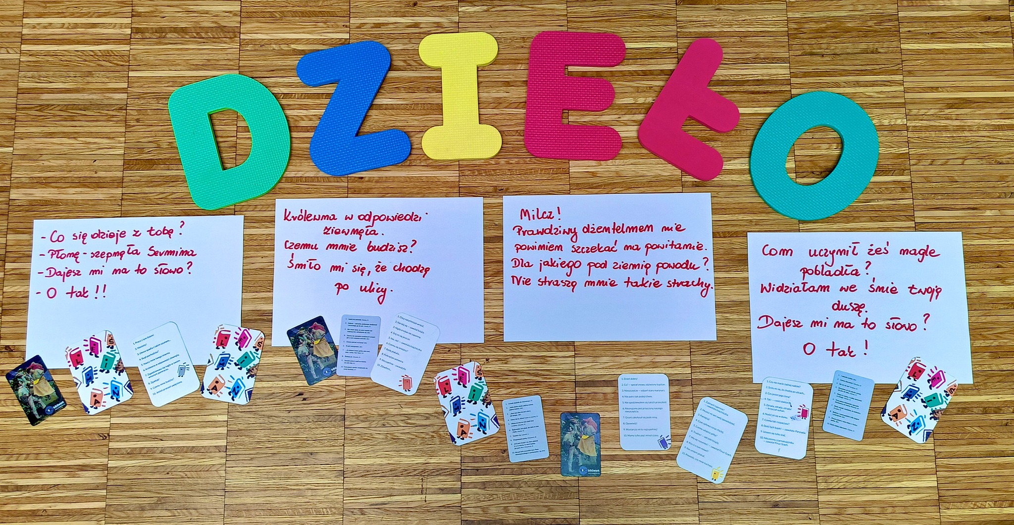 Już od pierwszych minut wieczoru nasi uczestnicy ruszyli do... DZIEŁA LITERACKIEGO – korzystając z *flirtów literackich* z różnych edycji Nocy Bibliotek, bawili się słowami, cytatami i tworzyli zupełnie nowe, niepowtarzalne DZIEŁA!