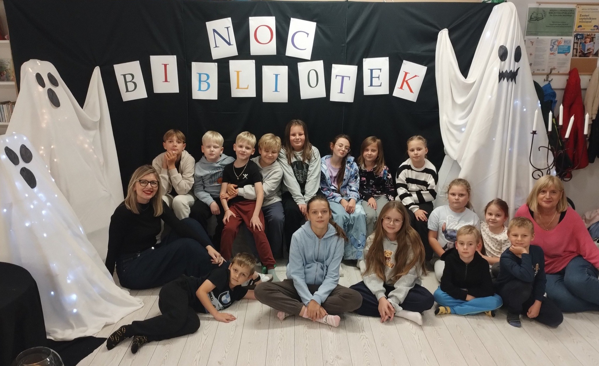 Tegoroczna Noc Bibliotek była pełna wrażeń. Odbyła się 17 października w godz. 18.00-21.00. Rozpoczęliśmy od wspólnego seansu filmowego – dzieci z ogromnym skupieniem oglądały film „Biuro Detektywistyczne Lassego i Mai. Rabuś z pociągu”. Tajemnicza fabuła i detektywistyczne opowieści wciągnęły wszystkich od pierwszej minuty.