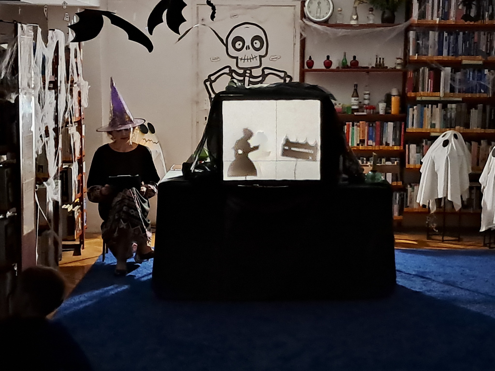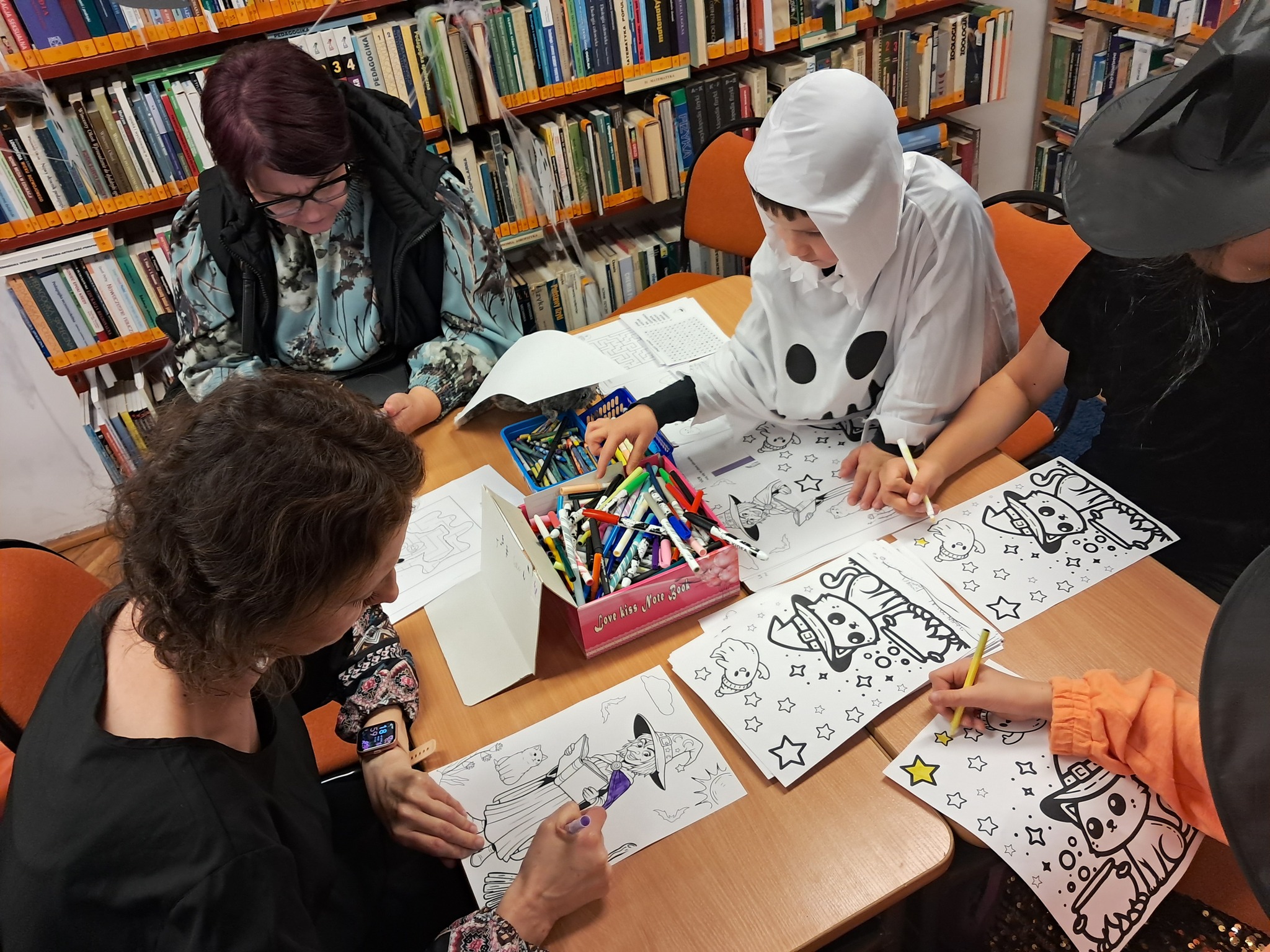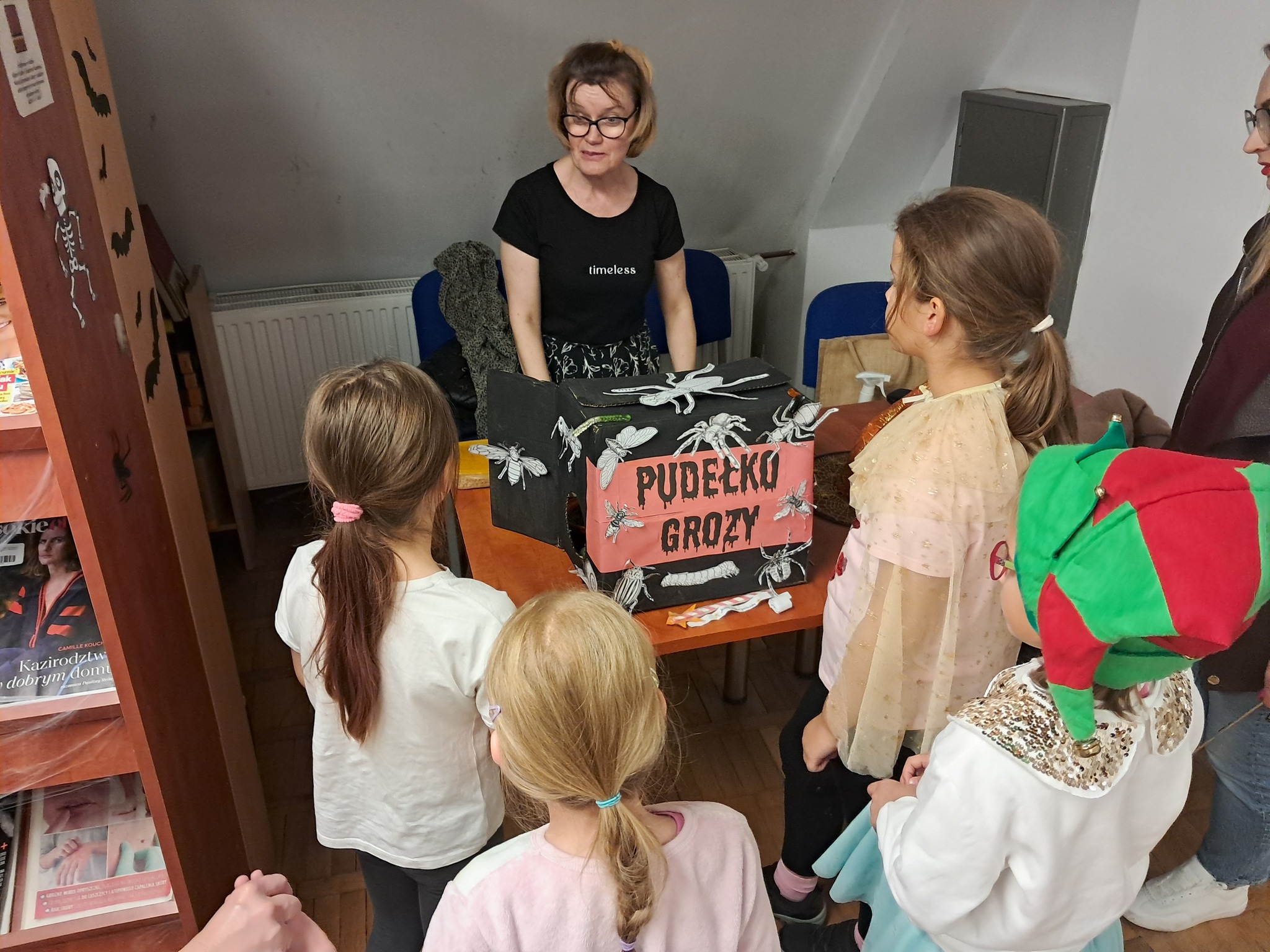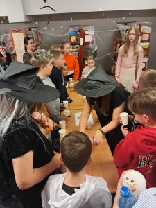 Podczas programu „Abrakadabra to duchy i magia”, przygotowanego specjalnie na Noc Bibliotek, czytelnia zmieniła się w pełne uroku miejsce zabaw dla dzieci. Najmłodsi wyruszyli w niezwykłą podróż do świata czarów – rozwiązywali zagadki, brali udział w konkursie, odkrywali tajemnice wróżb i z zachwytem oglądali magiczne sztuczki.
