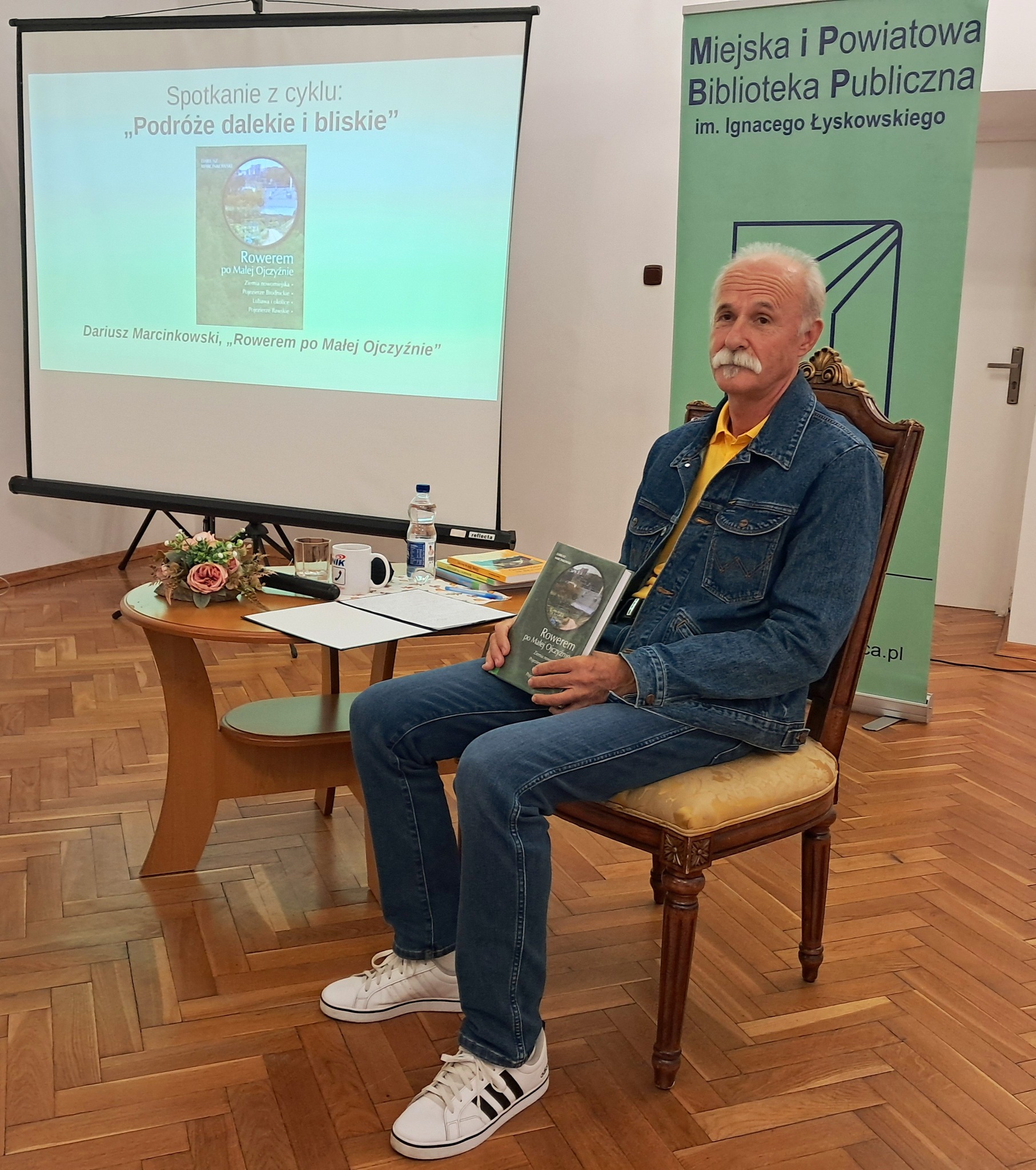 Spotkanie autorskie z Dariuszem Marcinkowskim otworzyło cykl „Podróże dalekie i bliskie”. Autor książki „Rowerem po Małej Ojczyźnie” zabrał uczestników w podróż po lokalnych trasach rowerowych – od krótkich wycieczek idealnych na rodzinne weekendy, aż po dłuższe i bardziej wymagające wyprawy. Opowieści pełne anegdot, ciekawych faktów i osobistych przeżyć sprawiły, że wielu z nas spojrzało na znane miejsca w zupełnie nowy sposób. To była inspiracja, by ruszyć w drogę i odkrywać piękno naszej okolicy na dwóch kółkach!