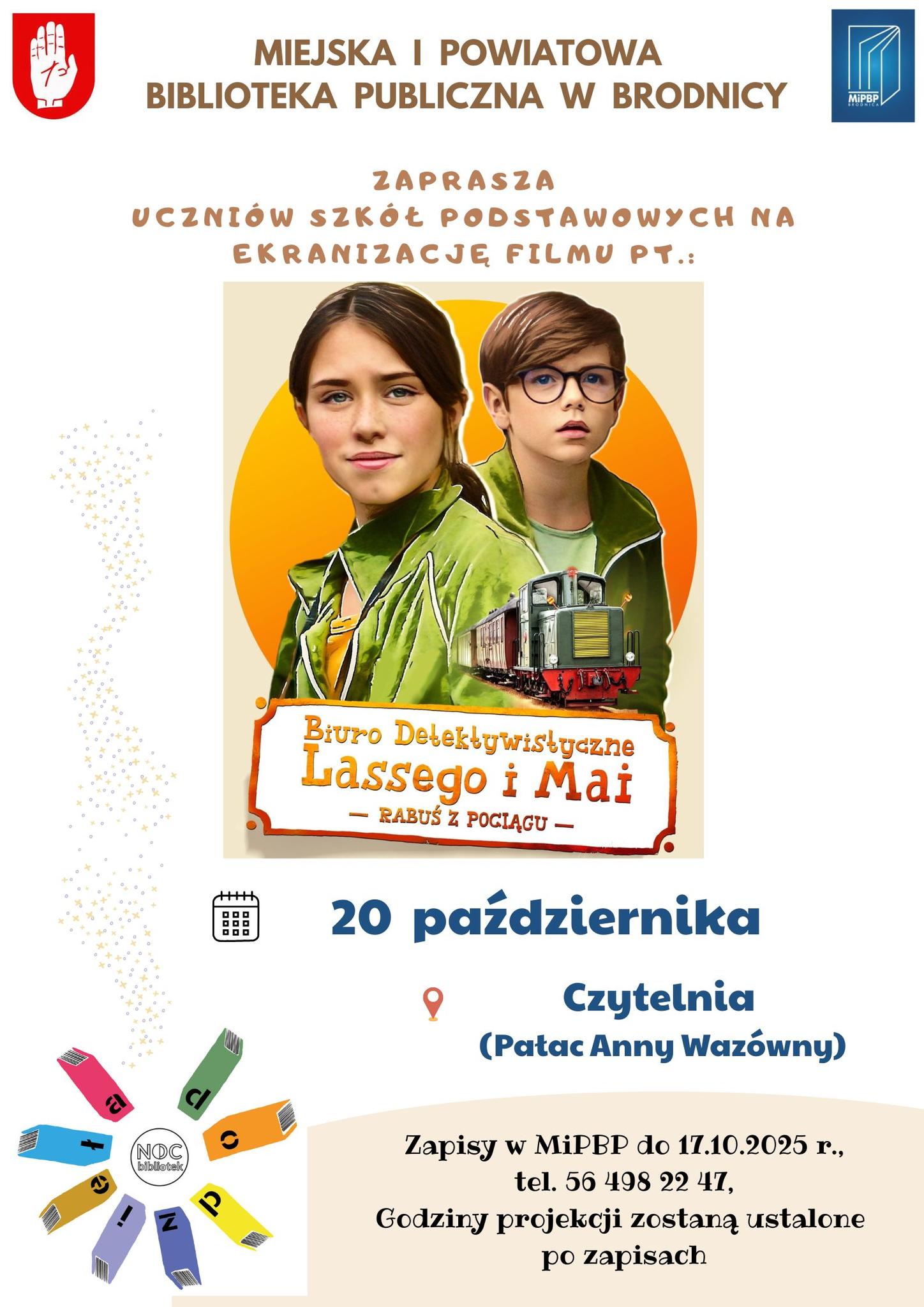20 października Czytelnię dla dorosłych brodnickiej biblioteki odwiedziła grupa uczniów ze SP w Brodnicy. W ramach Nocy Bibliotek dzieci obejrzały film pt. "Biuro Detektywistyczne Lassego i Mai – Rabuś z pociągu", będący ekranizacją popularnej serii książek detektywistycznych dla młodszych czytelników. Wizyta była okazją do zapoznania się z biblioteką oraz rozwijania zainteresowań czytelniczych.