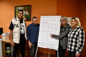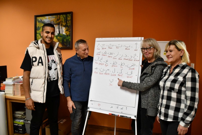 Równolegle, w ramach Kawiarenki Językowej, odbyły się fascynujące zajęcia z języka arabskiego, prowadzone przez Ahmeda Atigę. Uczestnicy doskonalili ten wyrazisty, pełny kolorytów język, uczyli się pisać w arabskim alfabecie i rozmawiali o kulturze tamtejszego świata.