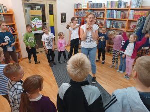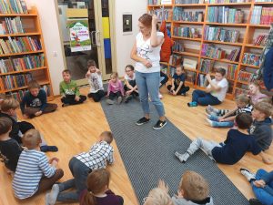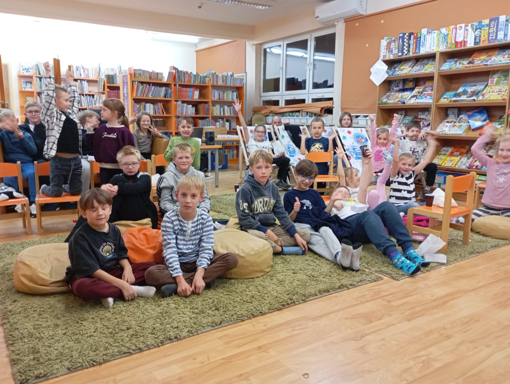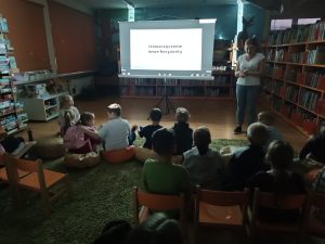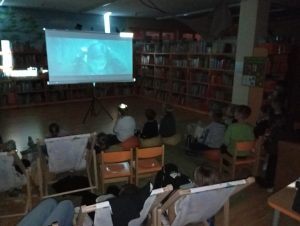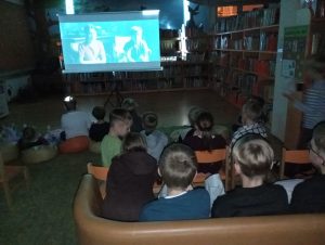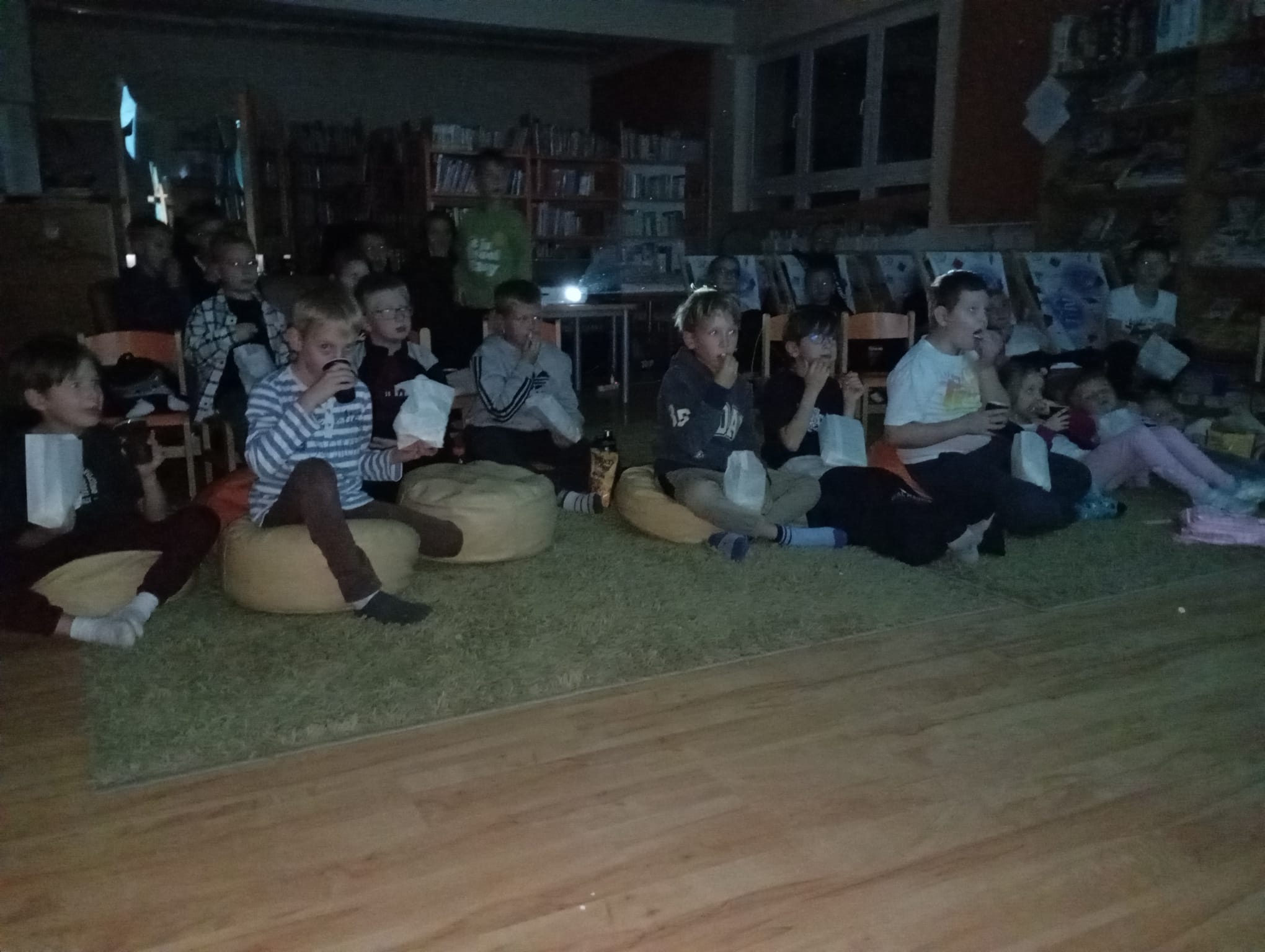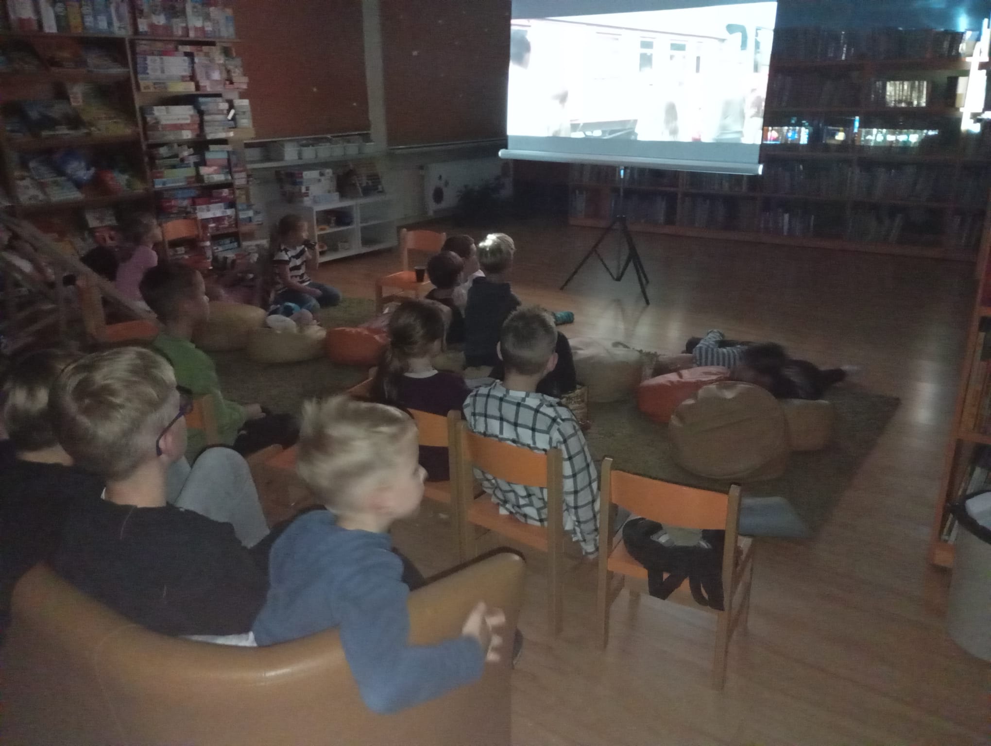 W tym czasie nasza wypożyczalnia dla dzieci zamieniła się salę kinową, gdzie licznie zgromadzeni młodzi widzowie z uważnością i w skupieniu rozwiązywali tajemnice Rabusia z pociągu, a następnie wyładowali nadmiar energii i emocji podczas świetnej zabawy!