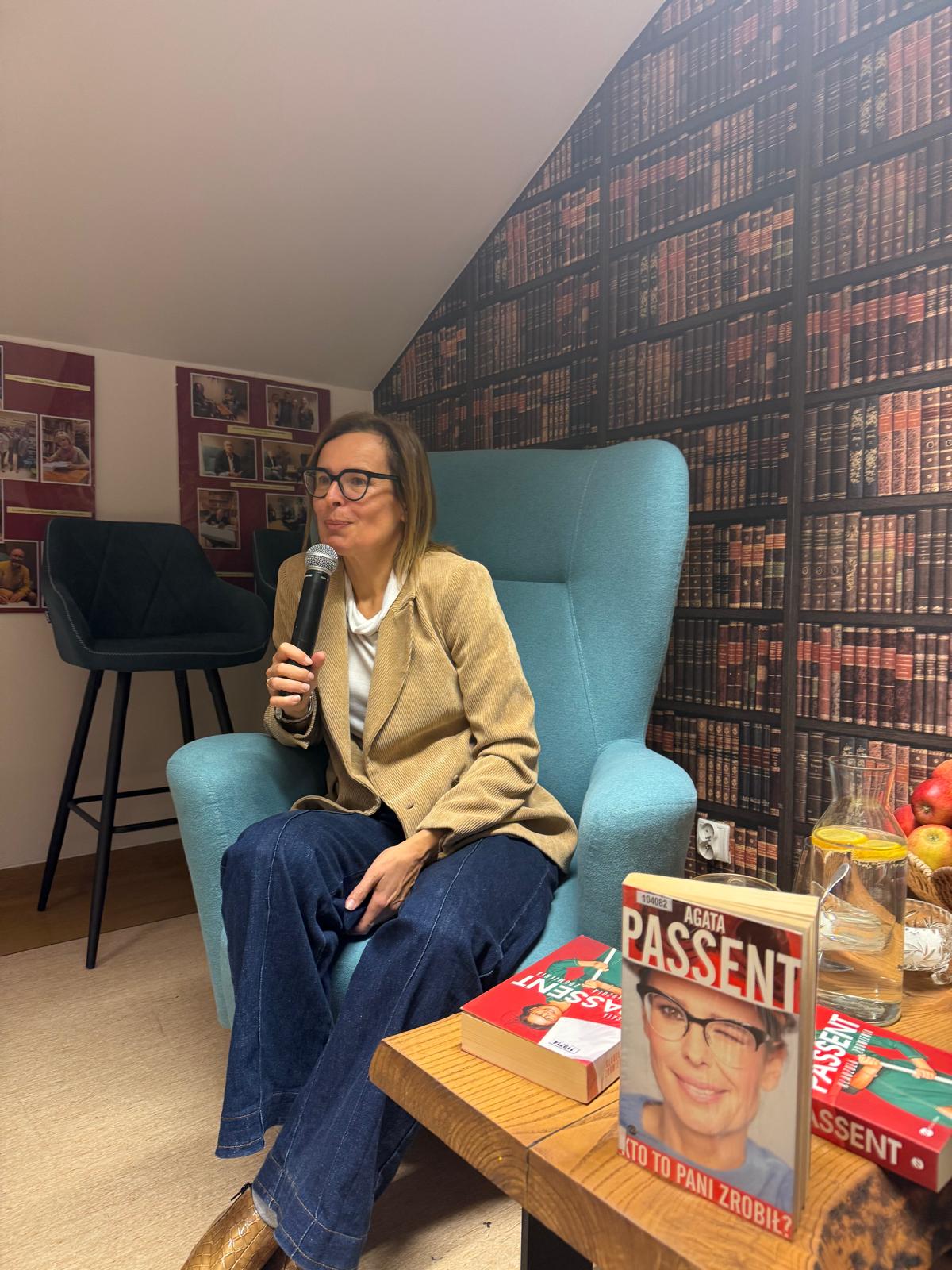 Zwieńczeniem tegorocznej Nocy Bibliotek było spotkanie z Agatą Passent – znaną dziennikarką, felietonistką i autorką książek, m.in. „Klauzula zdumienia” oraz „Kto pani to zrobił?”. Rozmowa z pisarką, pełna błyskotliwych spostrzeżeń i literackiego humoru, przyciągnęła wielu czytelników, którzy długo po zakończeniu spotkania wymieniali się wrażeniami i refleksjami.