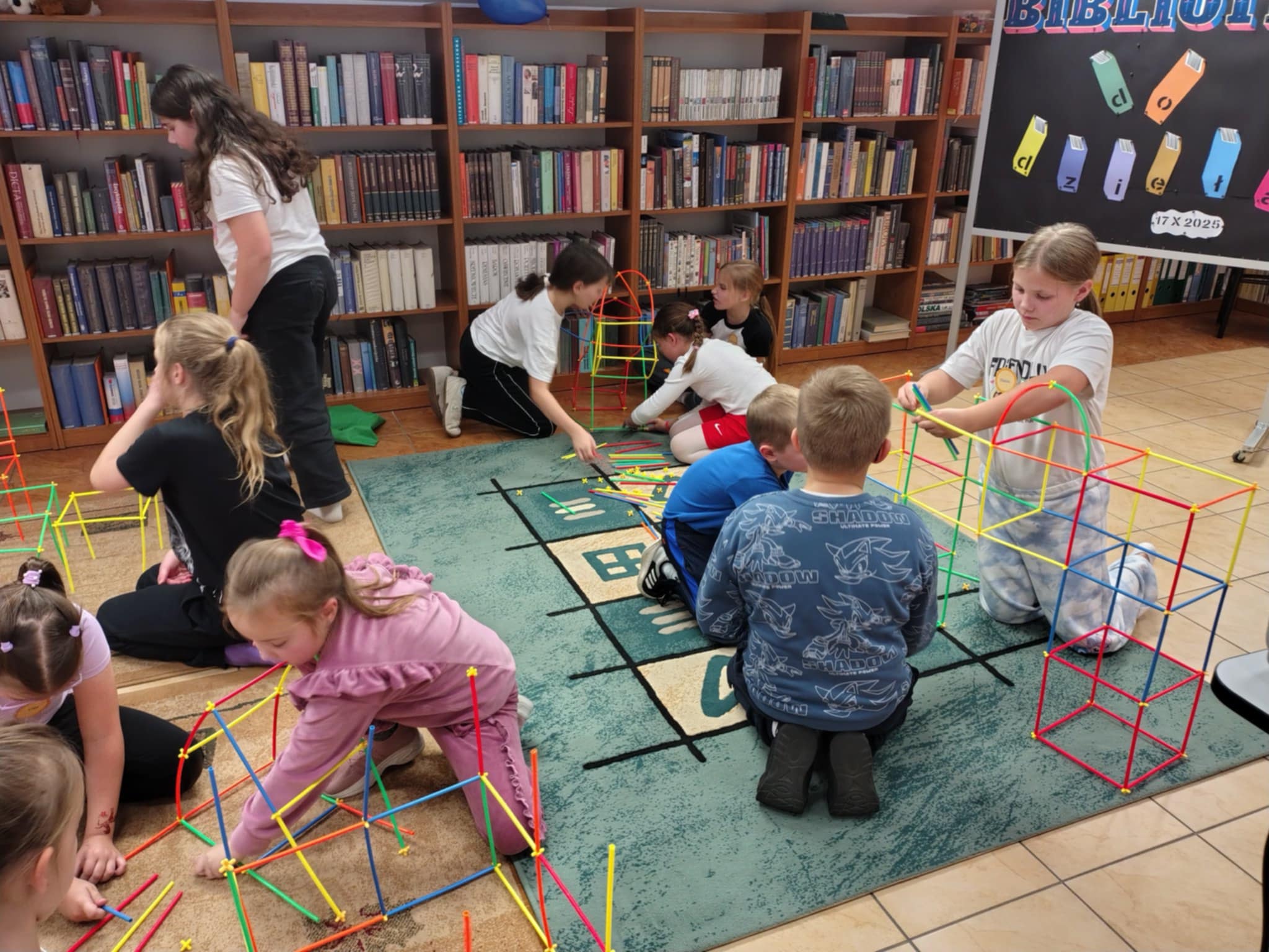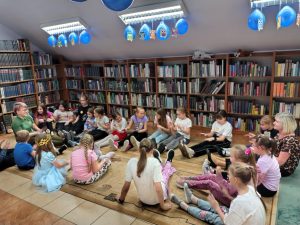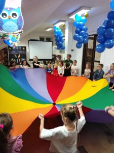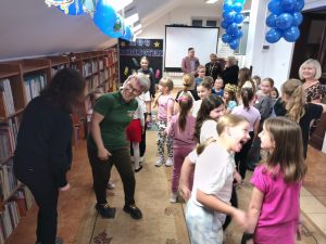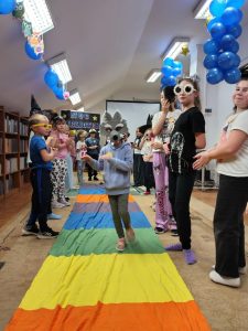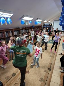 Po części literackiej przyszedł czas na aktywność ruchową i twórczą. Pani Agnieszka Cegłowska z "Animowanek" poprowadziła pełne energii zajęcia animacyjne. Było mnóstwo śmiechu, zabaw i kreatywności – dzieci wykazały się pomysłowością, sprytem i ogromnym entuzjazmem.