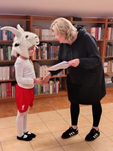 Po oficjalnym rozpoczęciu, Pani Anna Irla-Walenciuk – ku uciesze najmłodszych – wręczyła dzieciom kolorowe lizaki, a następnie zaprezentowała specjalnie przygotowany wiersz pt. „Do dzieła w bibliotece!”.