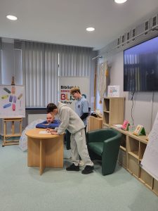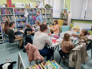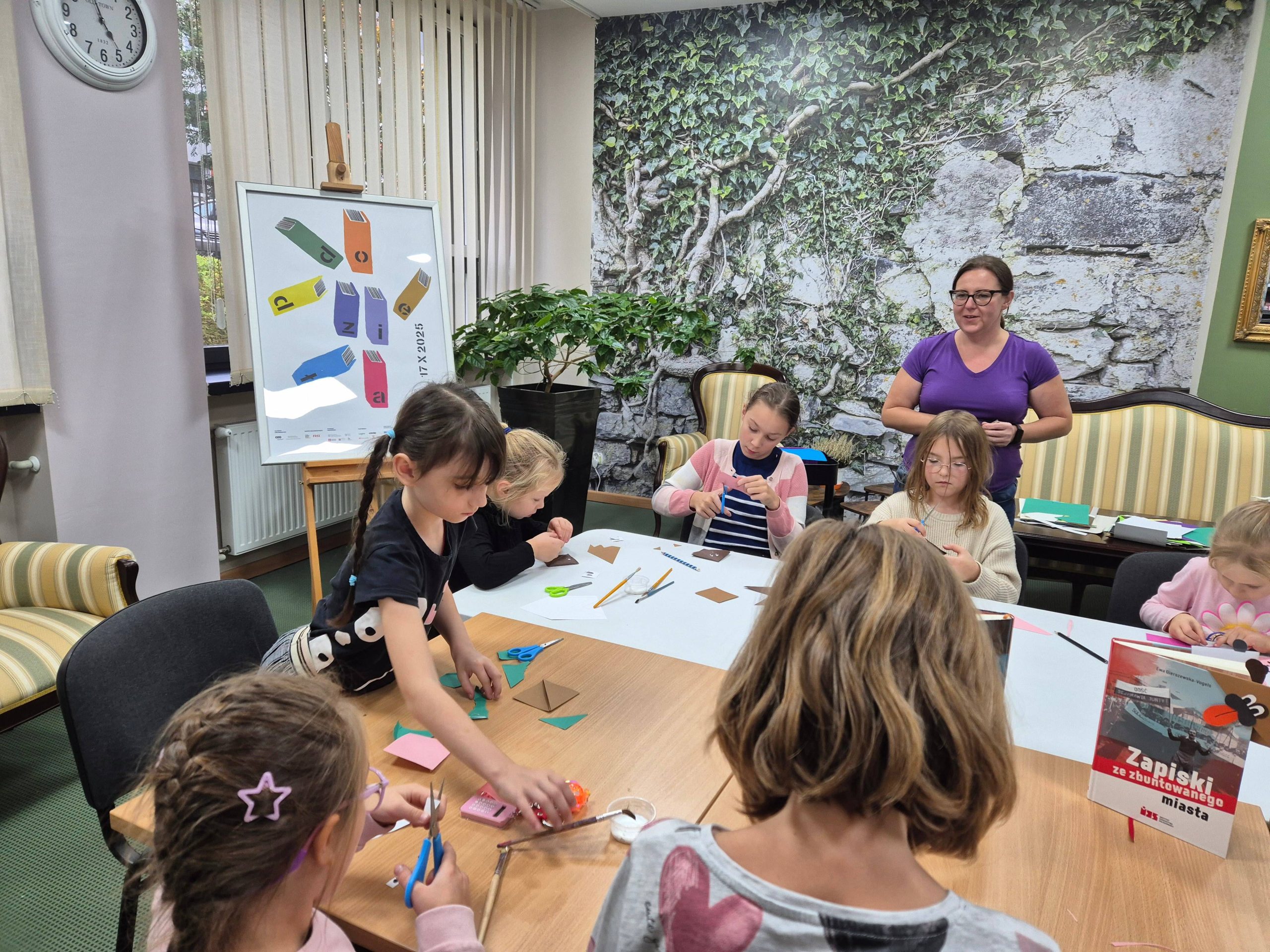 Pierwszy dzień Nocy Bibliotek rozpoczął się od warsztatów plastycznych dla dzieci w wieku 7-11 lat, które odbyły się w Czytelni. Uczestnicy stworzyli własne zakładki do książek, łącząc twórczość literacką z plastyczną. Dzieci miały okazję rozwinąć wyobraźnię i zdolności manualne, a jednocześnie poczuły się prawdziwymi artystami książek. W trakcie zajęć panowała radosna atmosfera, pełna kreatywności