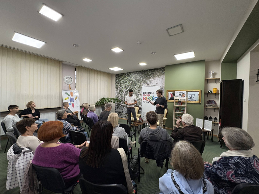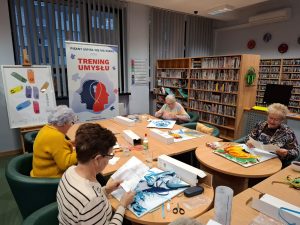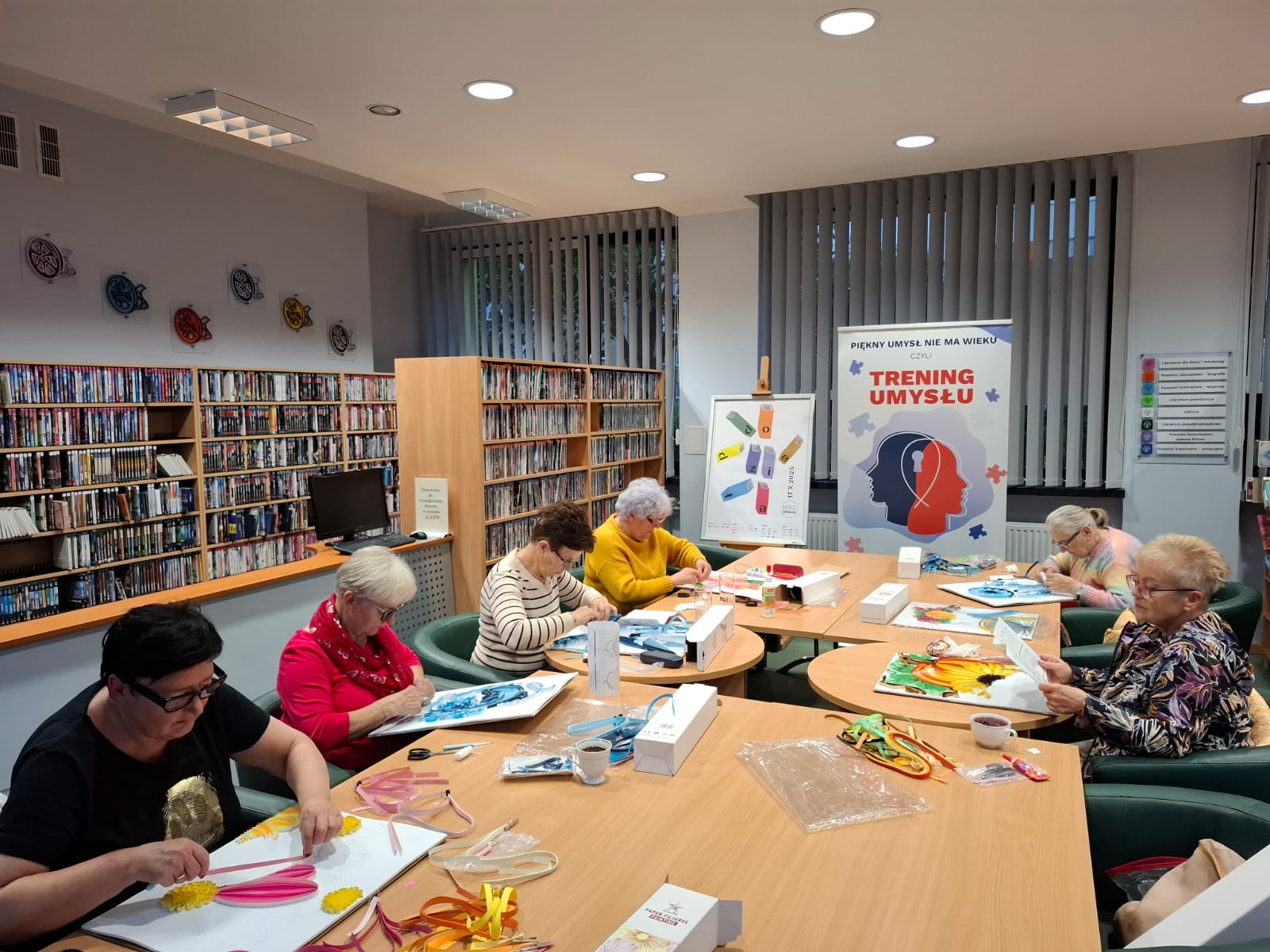 Dział Multimedialny gościł seniorów, którzy uczestniczyli w warsztatach Quillingu – kreatywnej technice wykorzystującej kolorowe paski papieru do tworzenia trójwymiarowych obrazów. Zajęcia, prowadzone z myślą o poprawie kondycji umysłowej, połączyły zabawę z treningiem pamięci
