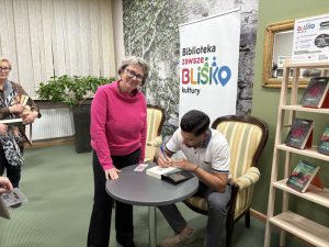 Wieczorem w Czytelni odbyło się spotkanie z Jackiem Kalinowskim, autorem thrillerów i powieści kryminalnych. Autor poruszał tematy psychologiczne, ludzkie tajemnice oraz mroczne zakamarki relacji międzyludzkich, co przyciągnęło miłośników kryminałów. Uczestnicy wysłuchali opowieści o kulisach powstawania jego książek, a także zadawali pytania dotyczące inspiracji i warsztatu pisarskiego. Spotkanie zostało dofinansowane ze środków Ministra Kultury i Dziedzictwa Narodowego w ramach programu Kultura – Interwencje. Edycja 2025. Zadanie „Biblioteka zawsze BLISKO kultury”