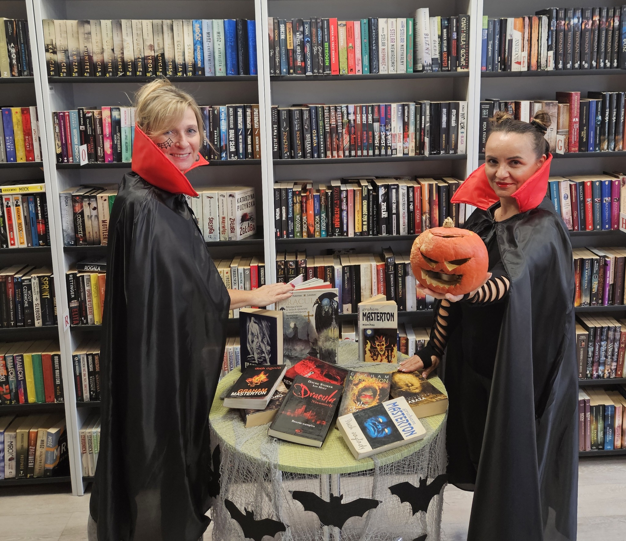 Dorośli czytelnicy mieli okazję skorzystać z Kiermaszu Taniej Książki, wziąć udział w quizach i zagadkach, a tego dnia byli obsługiwani przez wyjątkowe... Wampirotekarki. :)