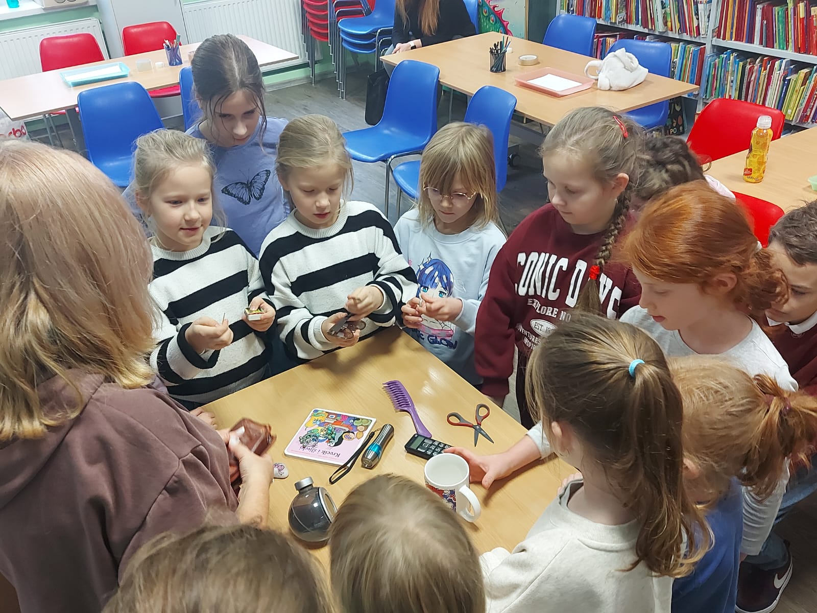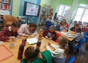 Młodzi uczestnicy w Dziale Dziecięco-Młodzieżowym z zapałem poznawali tajniki pracy detektywa, rozpoznawali tropy zwierząt, które spacerowały po naszej bibliotece, ćwiczyli spostrzegawczość odgadując co zniknęło z naszego biura detektywistycznego, zbierali dowody i szukali sprawcy na podstawie pobranych odcisków palców.