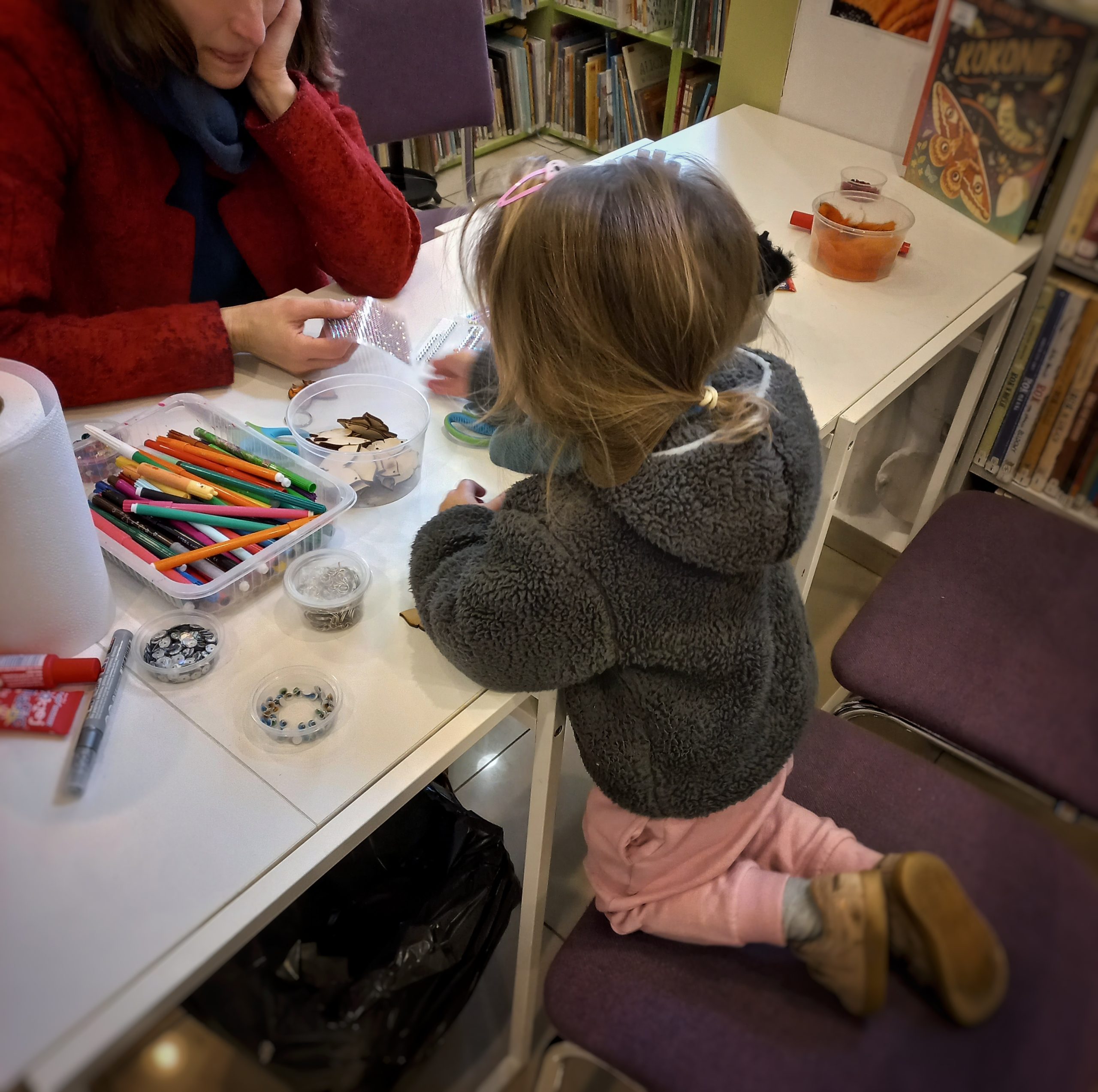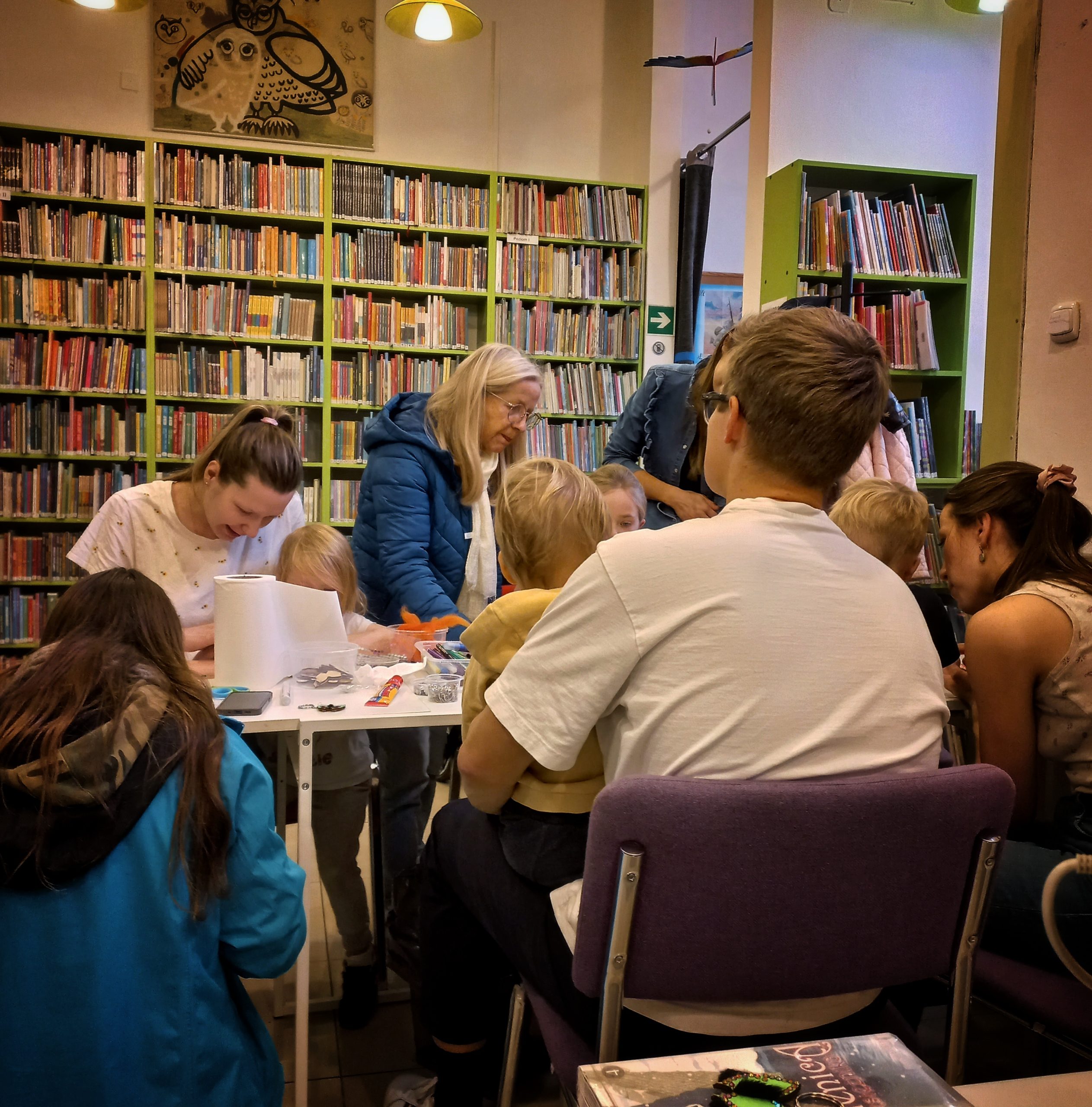 Prowadzimy warsztaty literacko-plastyczne na zapisy oraz takie z wolnym dostępem dla całych rodzin. Mimo małej powierzchni lokalowej, jest u nas zawsze wesoło i twórczo.