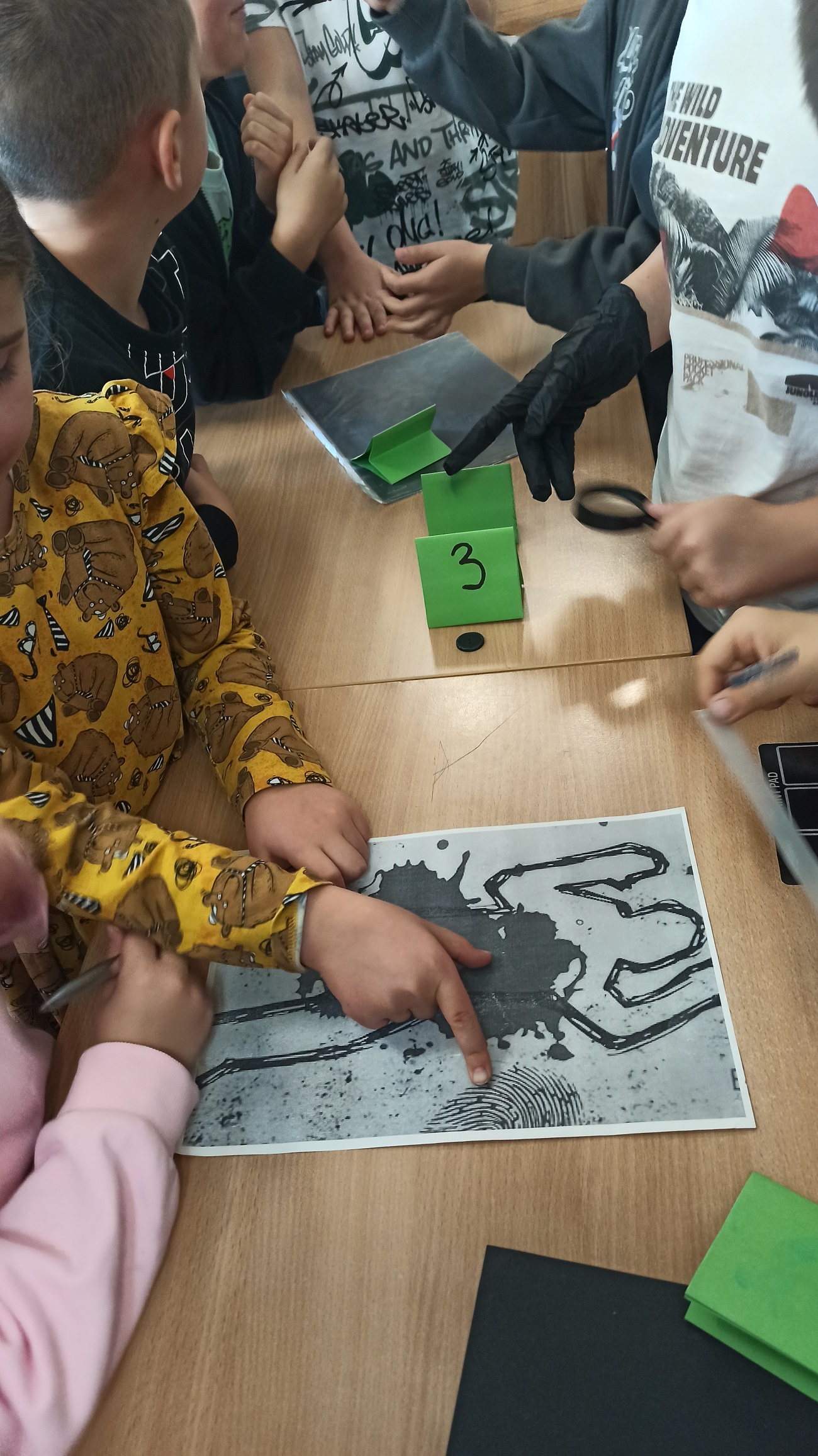 Uczniowie wykazali się dużym zapałem i spostrzegawczością, i jak przystało na prawdziwych detektywów, wszystkie ślady zostały przez dzieci odnalezione, zabezpieczone i poddane dalszym badaniom. odnajdując wszystkie ślady i zabezpieczając je do dalszych badań.