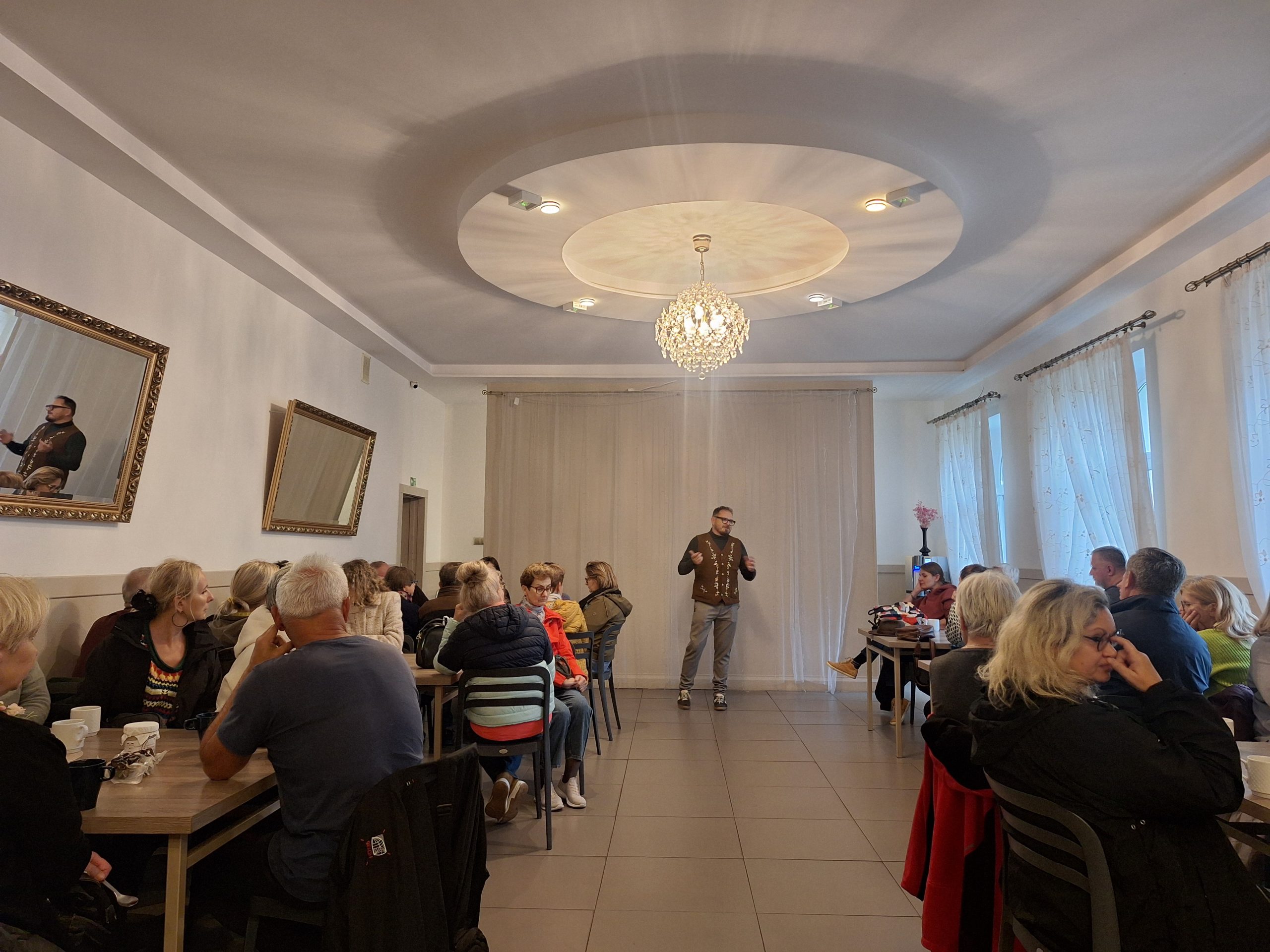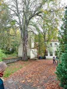 Zaciekawieni tym co jeszcze pozostało do zobaczenia w ramach plenerowego cyklu pałacowego, wyruszyliśmy w kolejną już trasę z okazji tegorocznej, ogólnopolskiej akcji Noc Bibliotek. Tradycyjnie pod kierownictwem naszego przewodnika Radka Kamińskiego, wybitnego znawcy tematu. Tym razem do stałych uczestników pleneru dołączyli nowi, zachęceni opowieściami z poprzednich bibliotecznych eskapad. Wrażeń było co niemiara. Trafiliśmy bowiem do siedlisk i miejsc zupełnie nam nieznanych, mimo, że tak nieodległych. Nasze myśli i wyobrażenia podążyły ku dawnym mieszkańcom i ich życiu, które albo naturalnie minęło, albo miało niespodziewane zakończenie. Takie były uwarunkowania historyczne i to one wyznaczały los ludzi mieszkających na terenach nienależących wówczas do Polski. Pozostały po nich wspomnienia oraz siedziby rodowe, mniej lub bardziej zniszczone. Niektóre szczęśliwie przejęte i wyremontowane przez nowych właścicieli. Inne tyle szczęścia nie miały. Szukaliśmy w nich śladów codziennego bytowania. Jednak przeważnie są jedynie pamiątkami po dawnych PGR-ach, ogołocone z mebli i sprzętów.