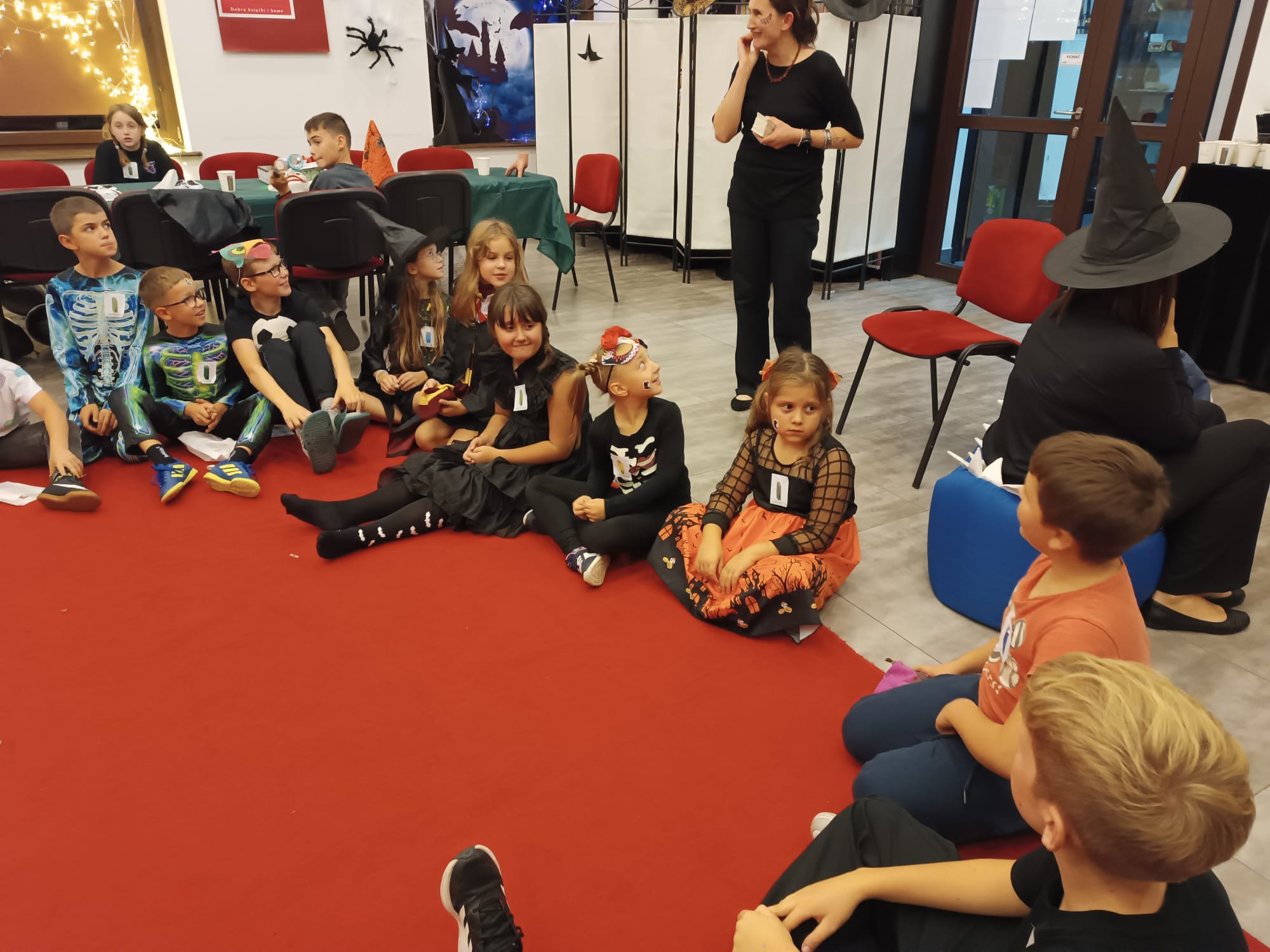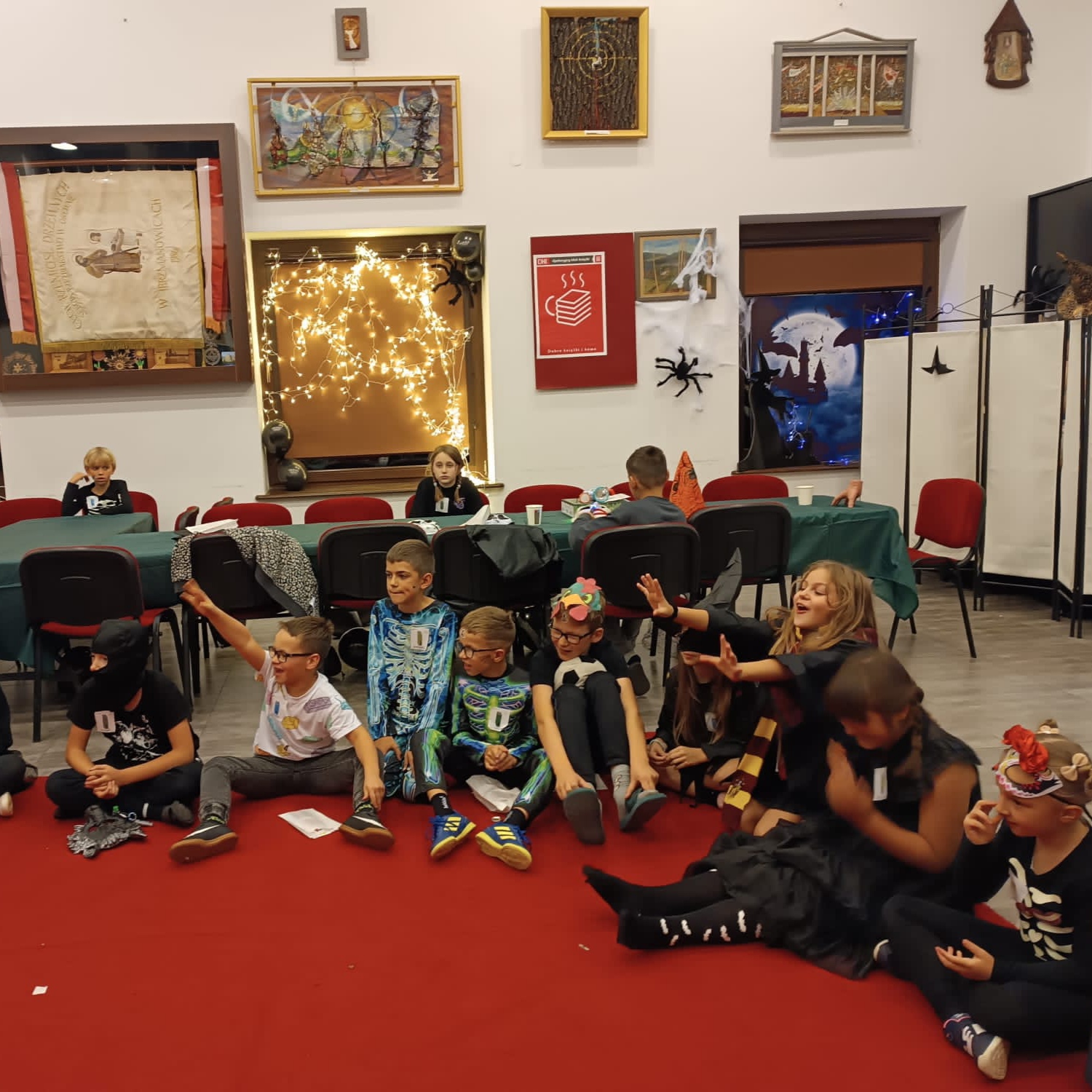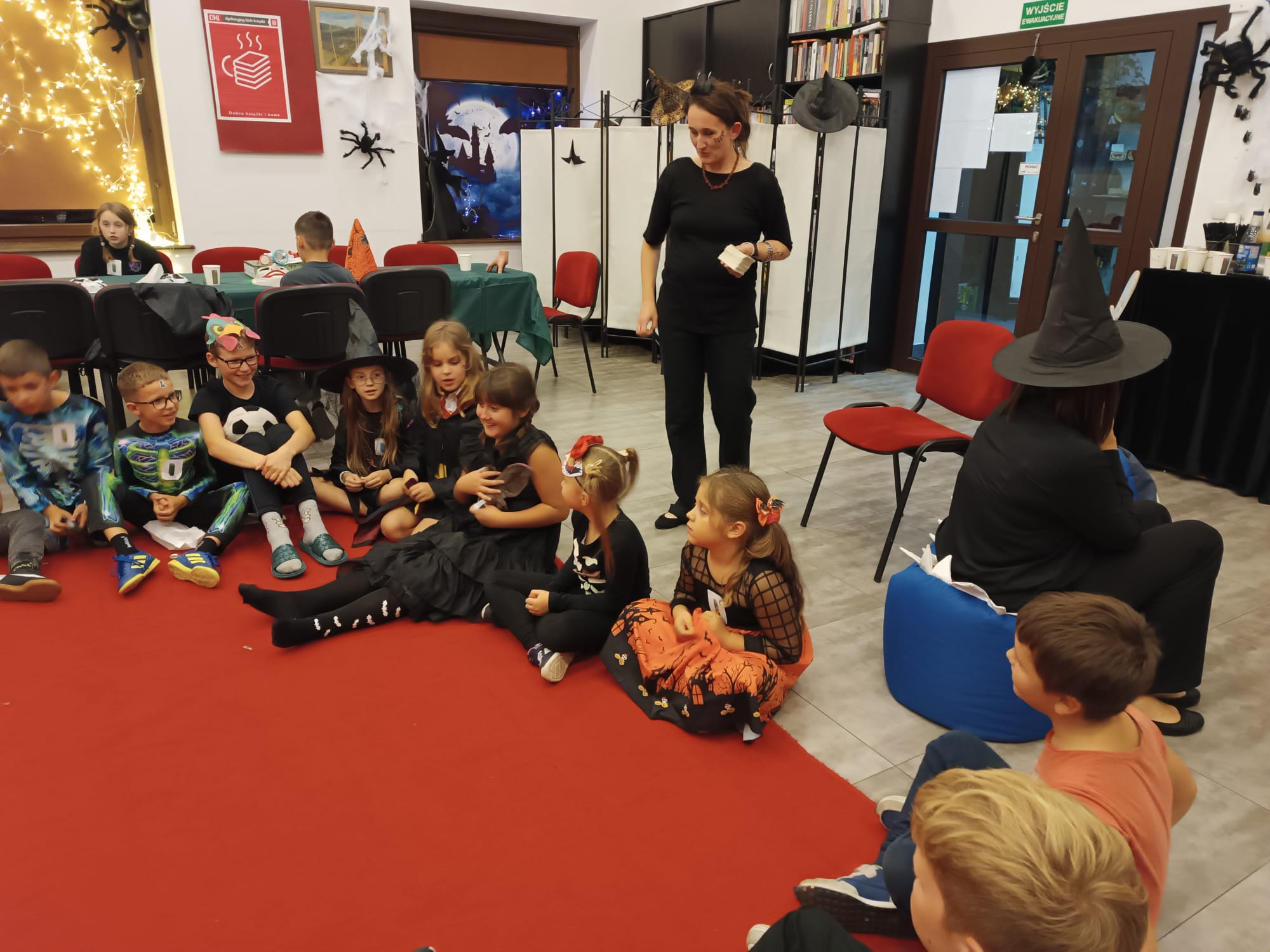 Nasze tegoroczne wydarzenie w Bibliotece Głównej w Jerzmanowicach zaczęliśmy świetną zabawą przy poszukiwaniu nietoperzy na terenie całego budynku. Dzieci w 6 grupach miały za zadanie znaleźć jak najwięcej papierowych zwierzątek - będących znakiem rozpoznawczym naszej gminy - przyklejonych w różnych zaskakujących miejscach. Spostrzegawczość była tym cenniejsza, że w budynku było ciemno, a uczestnicy byli wyposażeni jedynie w latarki. Po skończonej zabawie przeliczyliśmy znalezione nietoperze, a 3 najlepsze grupy dostały nagrody.
