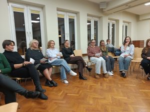 Po chwili refleksji przyszła pora na warsztaty z Kamilą Kaczmarczyk (poetyczna.pl) – spotkanie „Między wierszami” połączone z emocjonalnymi „za-piskami” i artystycznym kolażem „dosłowne esencje”. Uczestnicy mogli spróbować swoich sił w łączeniu słowa, obrazu i emocji w jedną, osobistą całość.