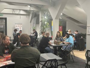 W tym samym czasie na trzecim piętrze biblioteki działała strefa gier planszowych, przygotowana przez Stowarzyszeniu Fantastyka Qultura Historia „FAQ HIS” . Uczestnicy mogli spróbować swoich sił w różnorodnych grach – od logicznych po rodzinne – odkrywając, że biblioteka to nie tylko książki, ale także miejsce spotkań i wspólnej zabawy.