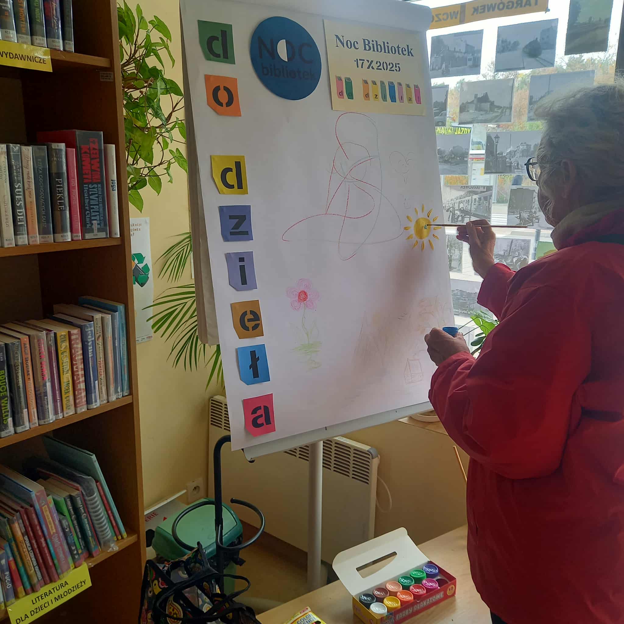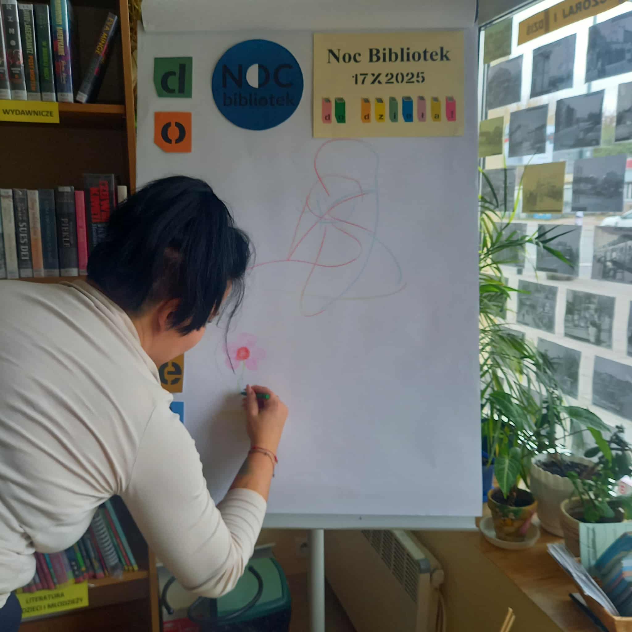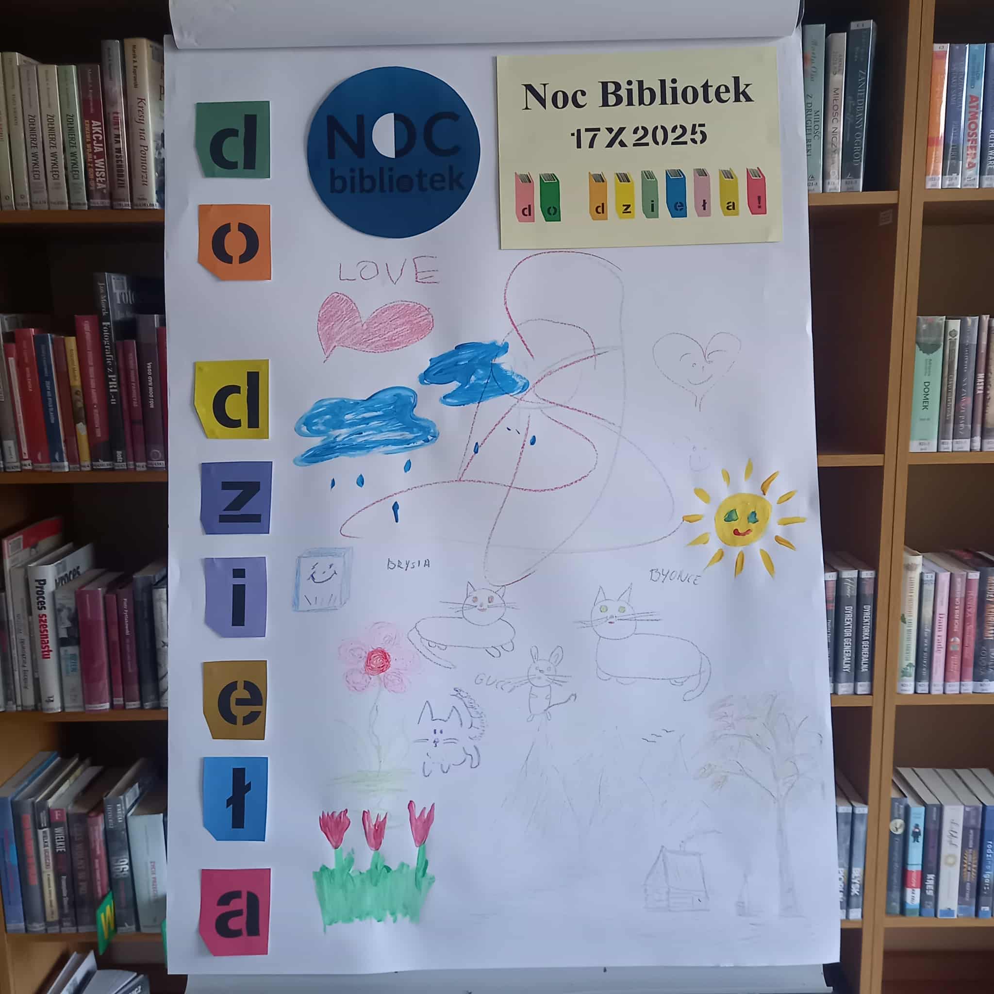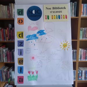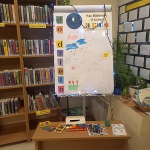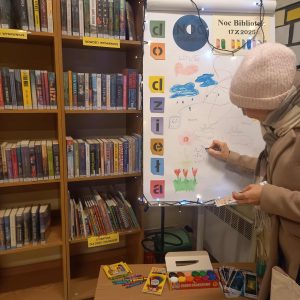 17 października w Wypożyczalni nr 37 pojawiły się nietypowe rekwizyty. Oprócz książek w bibliotece pojawiła się tablica wraz z kartkami, farbami i kredkami. Z okazji Nocy Bibliotek, której tegoroczne hasło brzmiało „Do dzieła!”, powstało nasze własne biblioteczne dzieło. Czytelnicy, którzy tego dnia odwiedzili tę placówkę, mogli puścić wodze fantazji i zaprezentować swoje, czasami ukryte, talenty malarskie. Z tych fantazji powstał ciekawy kolaż – unikatowe biblioteczne dzieło, które pozostanie w naszych zbiorach na pamiątkę tej Nocy Bibliotek.