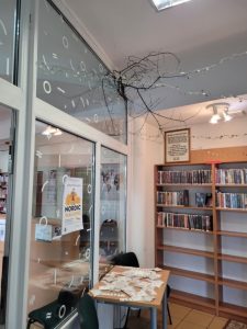 Każdy, kto odwiedzi tę wypożyczalnię, będzie mógł wziąć udział w konkursie wiedzy z nagrodami. „Drzewo wiedzy” to gałązki umieszczone w wazonie, gdzie zamiast liści będą wisiały karteczki w kształcie sercowatych liści bzu. Po jednej stronie „liścia” będzie umieszczony tytuł dzieła literackiego wraz z pytaniem – zagadką, kto jest autorem. Na drugiej stronie będą umieszczone trzy propozycje odpowiedzi. Każdy, kto prawidłowo wskaże autora dzieła, otrzyma okolicznościową zakładkę do książki i… będzie mógł wybrać nagrodę książkową! Konkurs zrywania liści z drzewa wiedzy będzie przeznaczony zarówno dla dorosłych, jak i dzieci.