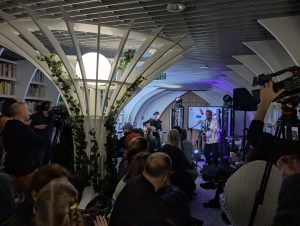 18.00–19.00 Uroczysta inauguracja XI Ogólnopolskiej Nocy Bibliotek (scena w większej sali, obowiązują zapisy; transmisja na stronie internetowej Biblioteki, a także na Facebooku i YouTube)